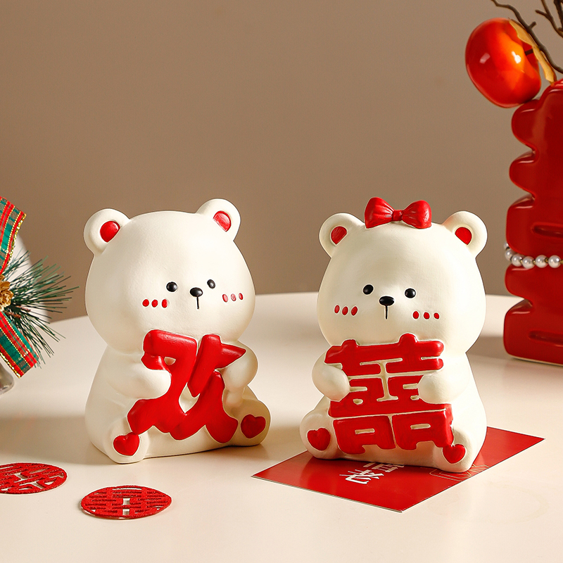 创意欢喜情侣熊摆件订婚新婚家居客厅婚房装饰礼品结婚送新人礼物