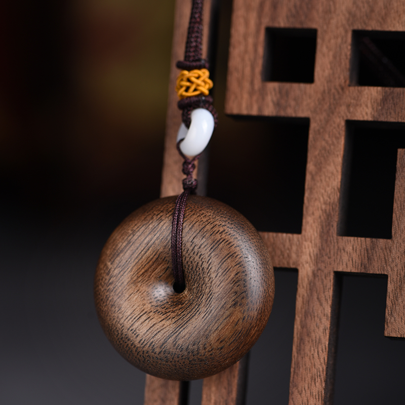 玄同文莱沉香平安扣吊坠男女款钥匙扣木质挂件挂包挂手机链文玩