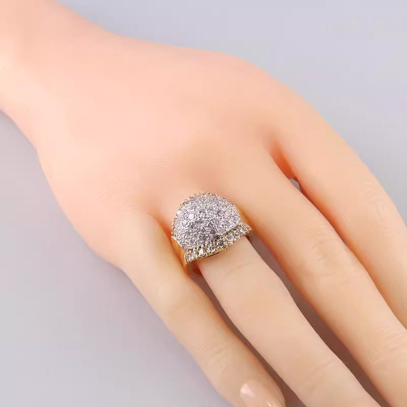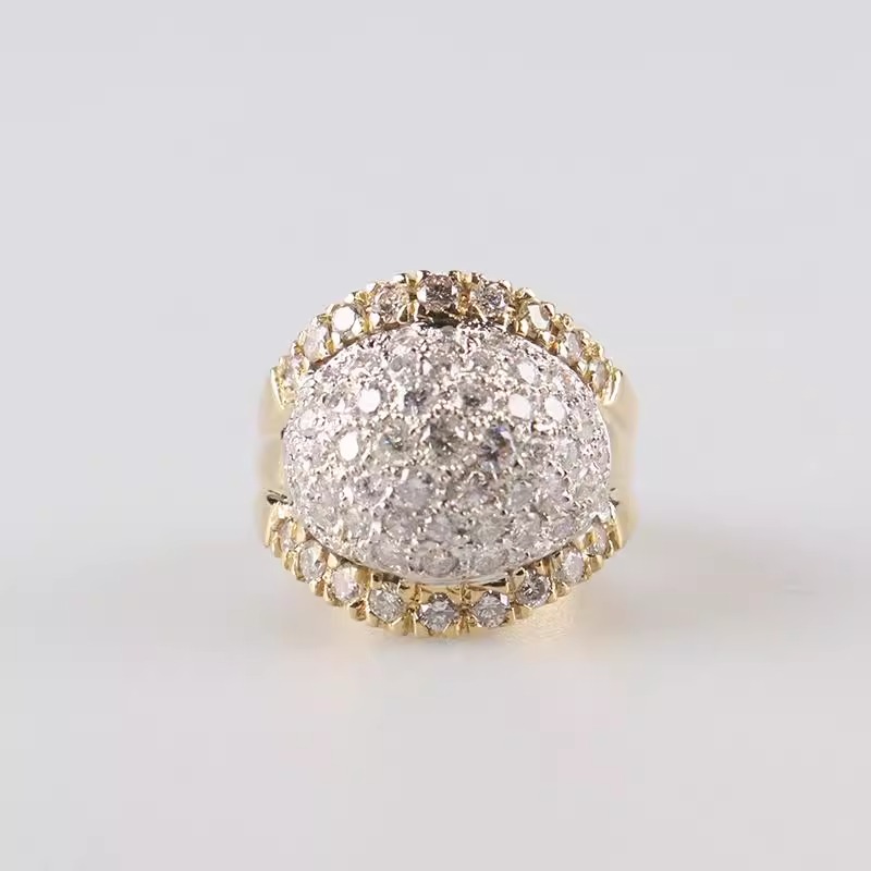 「95新」日本进口商品意大利制造群镶钻石750YG/750WG戒指52号
