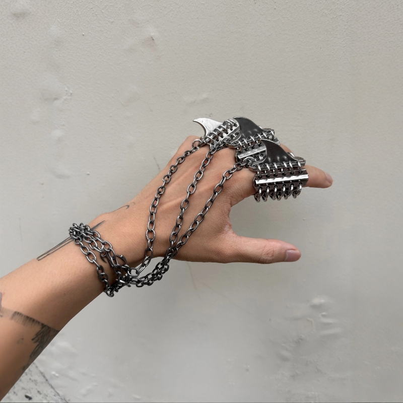Without Me/IIIMIII爪牙形暗黑链条不规则拼接戒指手链