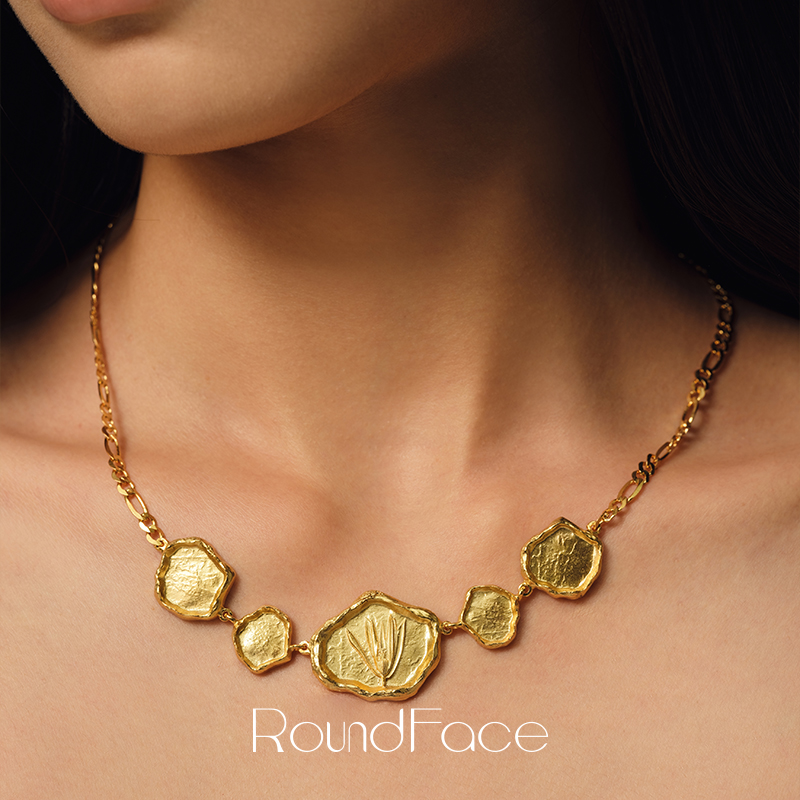 特卖款RoundFace 24SS 设计师夸张款浮雕手工金属造型串链项链