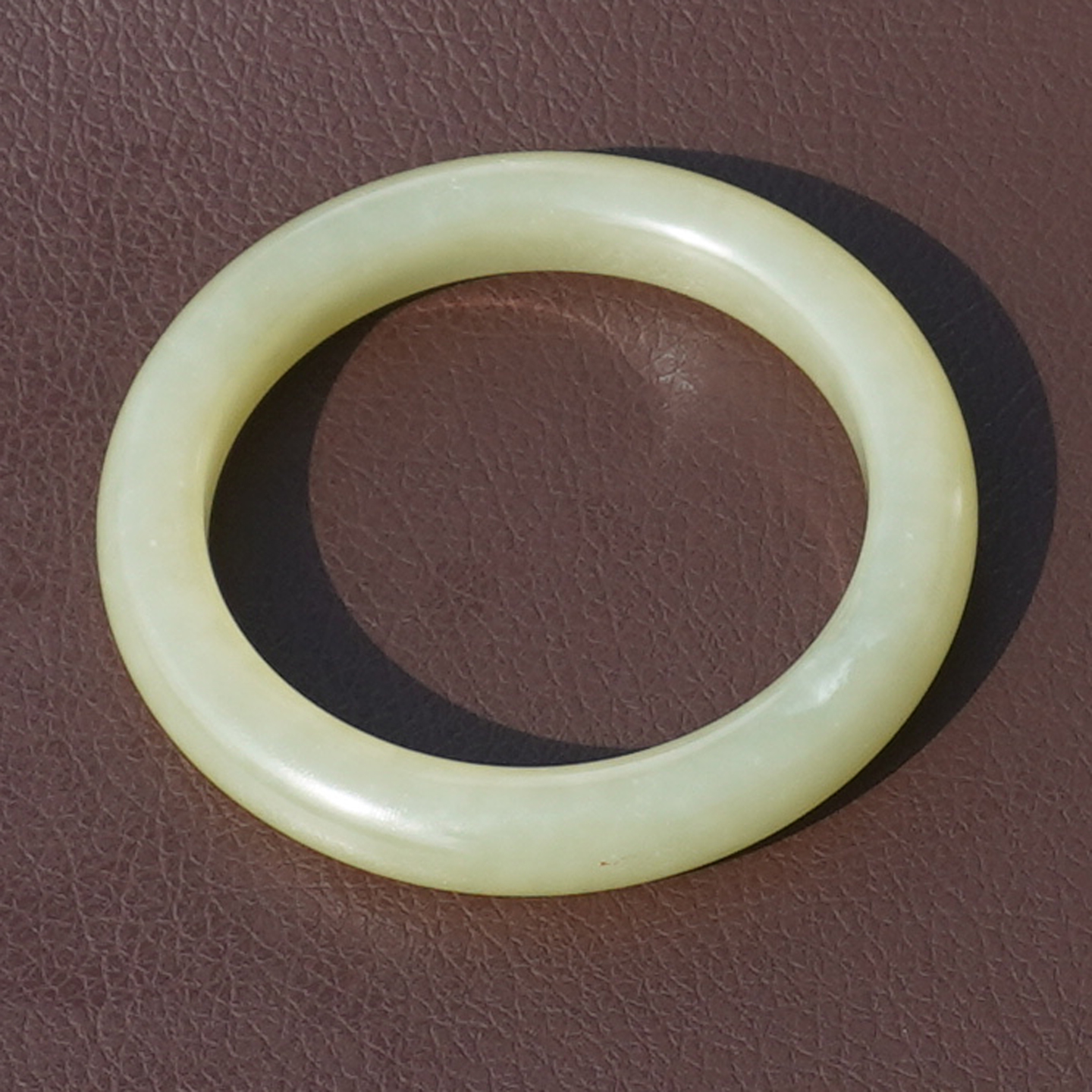 赢麻方言和田玉新疆若羌高脂细润青黄口料60mm胖圆条时尚女手镯A6