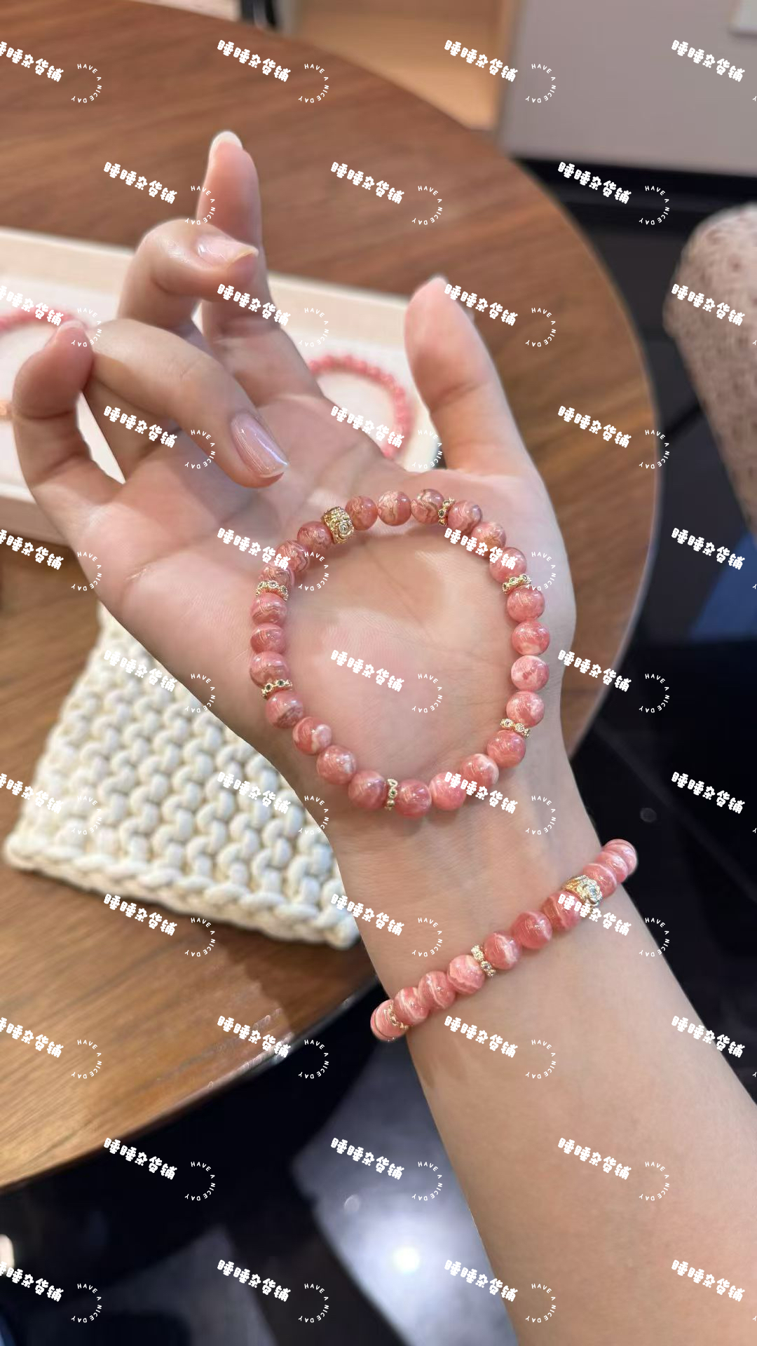 天然石英质玉樱花粉玉髓散珠圆珠diy半成品串珠手链项链手工配件