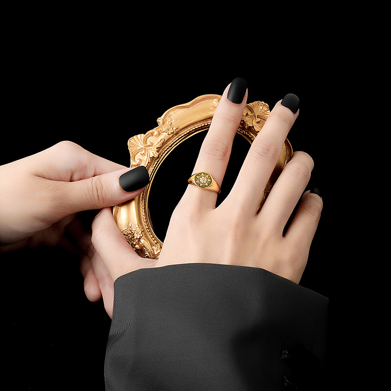 极速欧美冷淡风镶钻指南针戒指女时尚个性向N日葵图案戒指开口饰