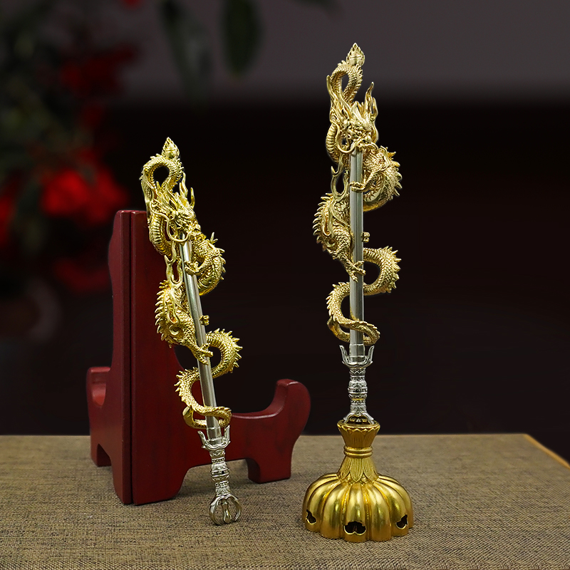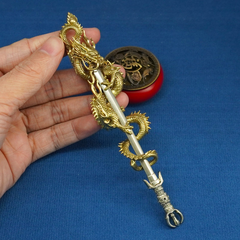 黄铜白铜俱利伽罗不动明王剑神龙剑复古吊坠挂坠项链手把件古玩剑