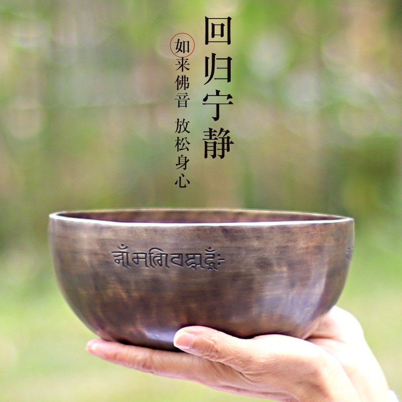 尼泊尔手工颂钵桑塔钵满月钵西藏佛音碗瑜伽冥想静心乐器音钵铜磬
