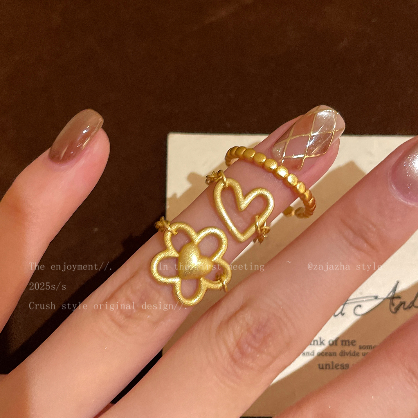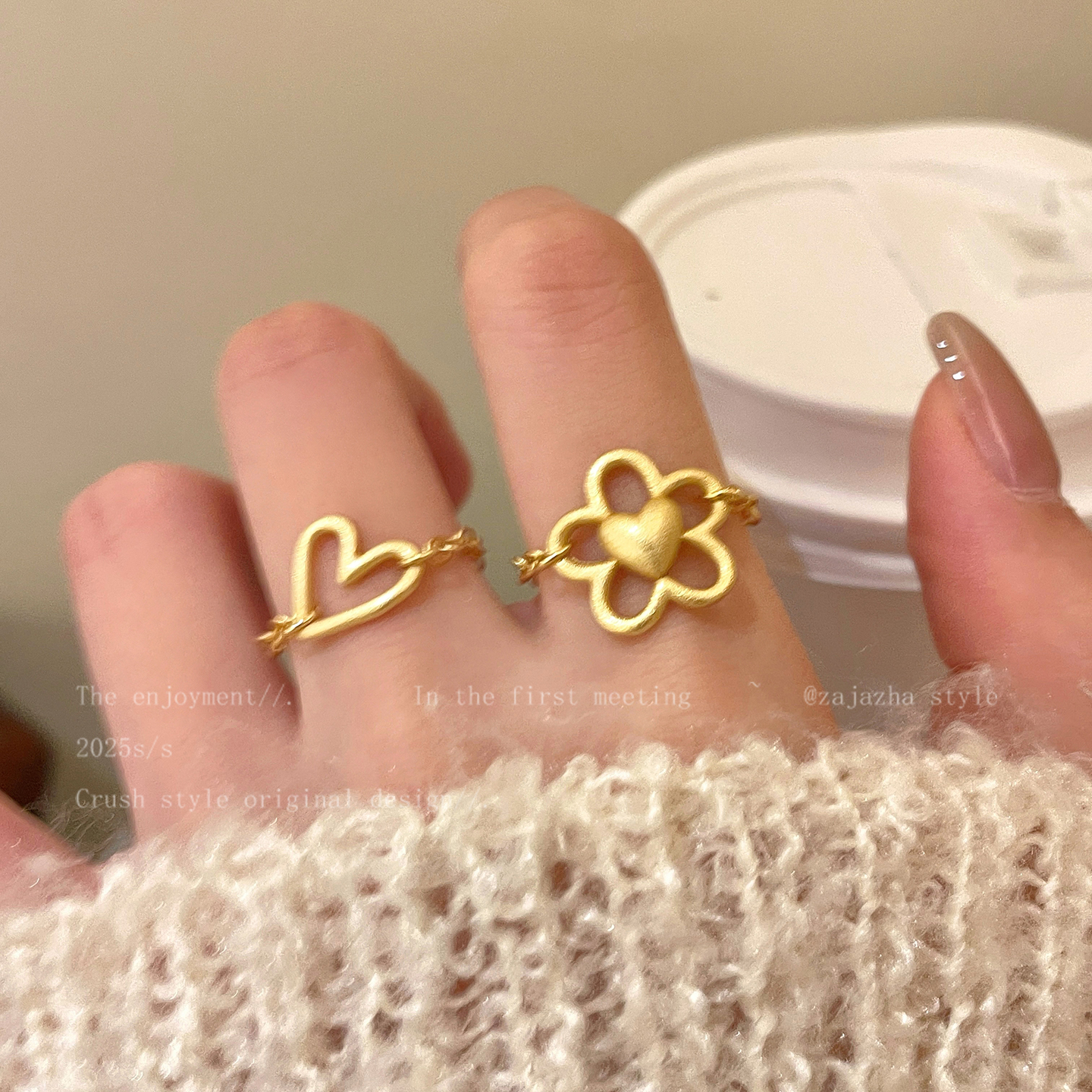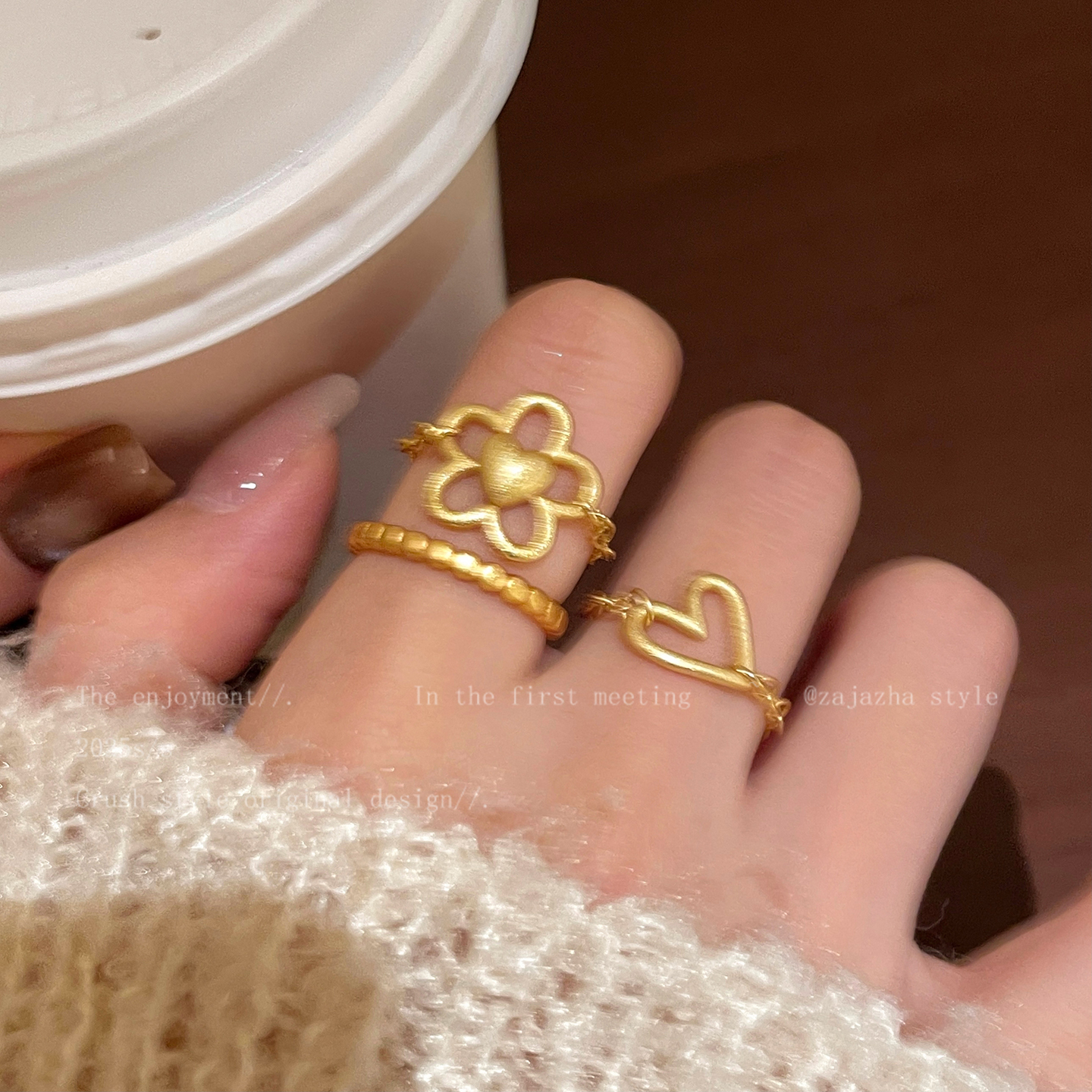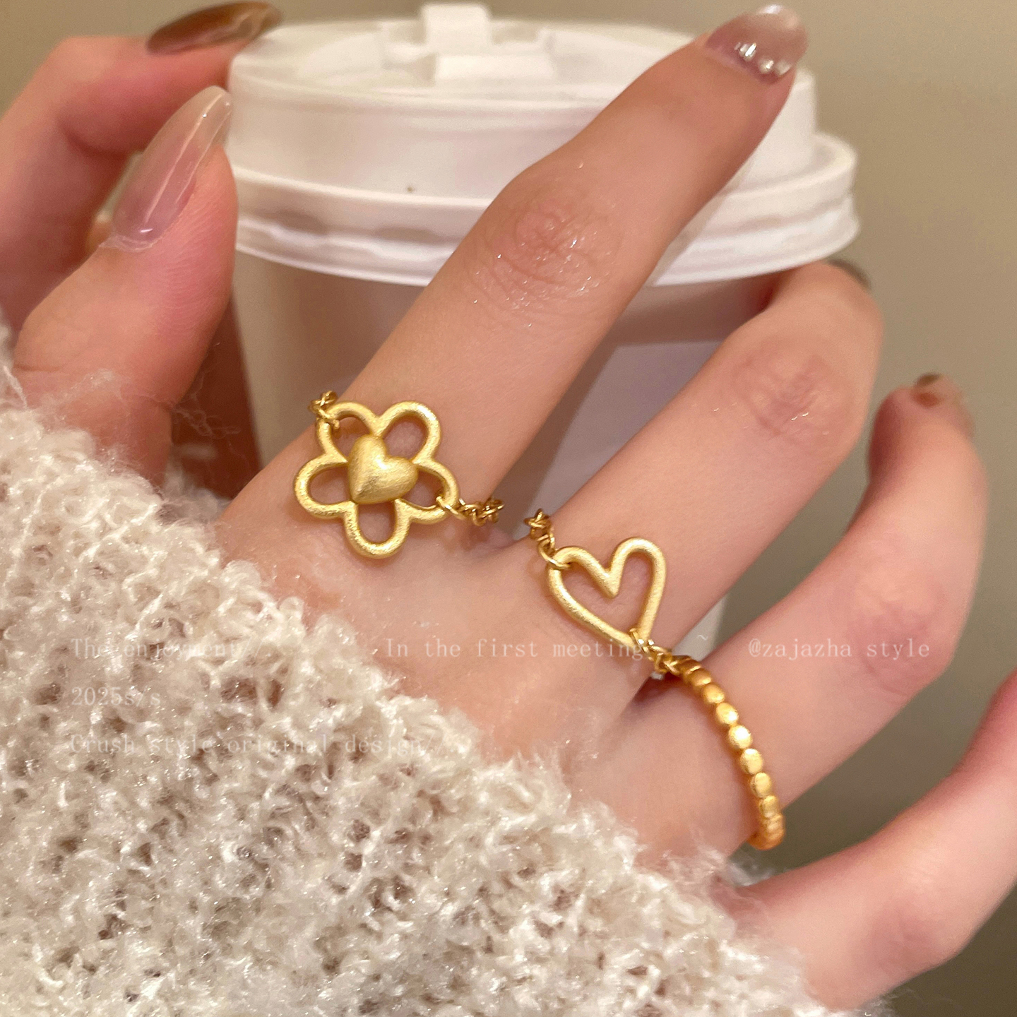 浪漫温莎~金色镂空爱心戒指女秋冬新款轻奢高级感精致叠戴食指戒