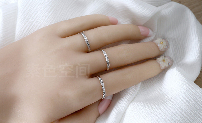925纯银戒指满天星潮人闪亮食指戒指关节女日韩简约学生细尾戒