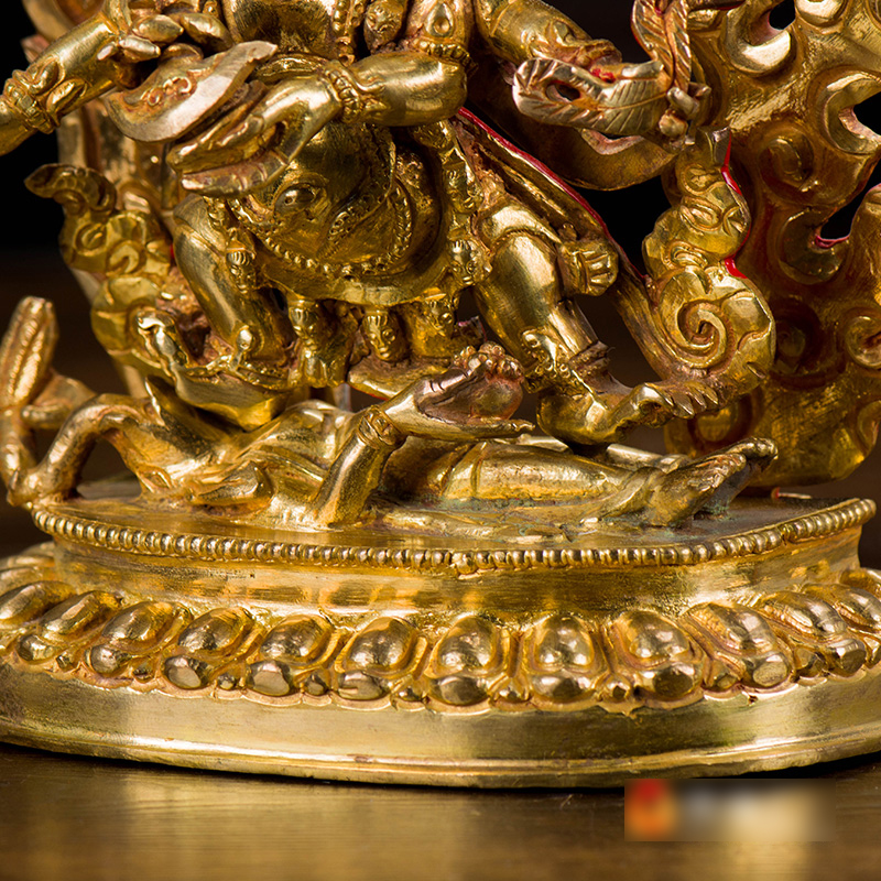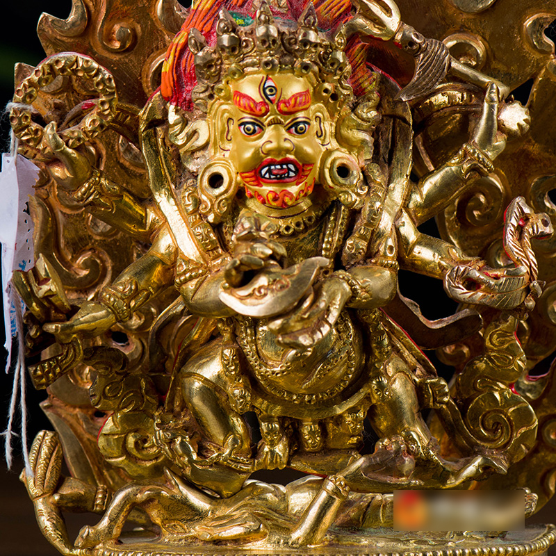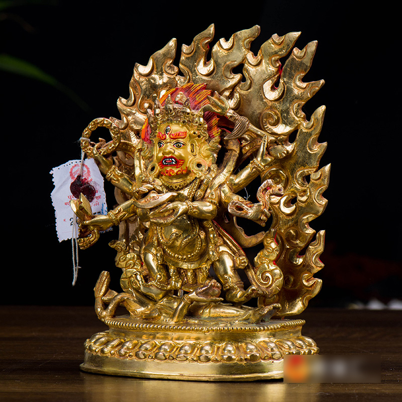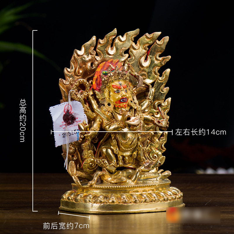 家用现代大黑天铜像摆件尼泊尔手工铜全鎏金六臂玛哈嘎拉铜像