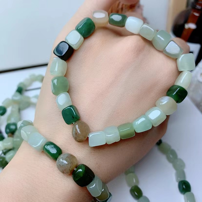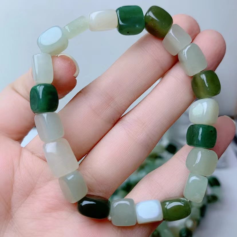 天然和田玉小多宝方糖玉手链和田玉边角料方块随形珠时尚女士手串