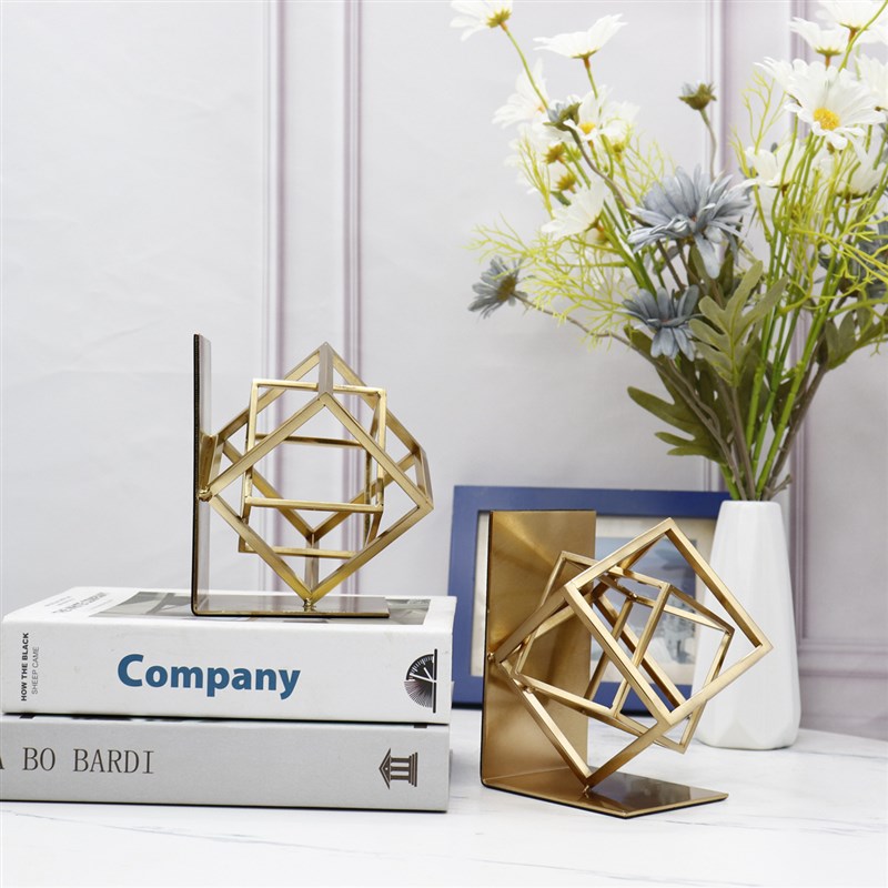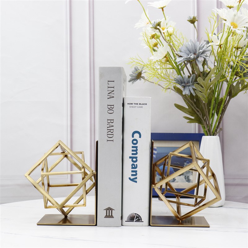 简约现代金属立方书靠书挡装饰样板房书房办公室桌面软装欧式摆件