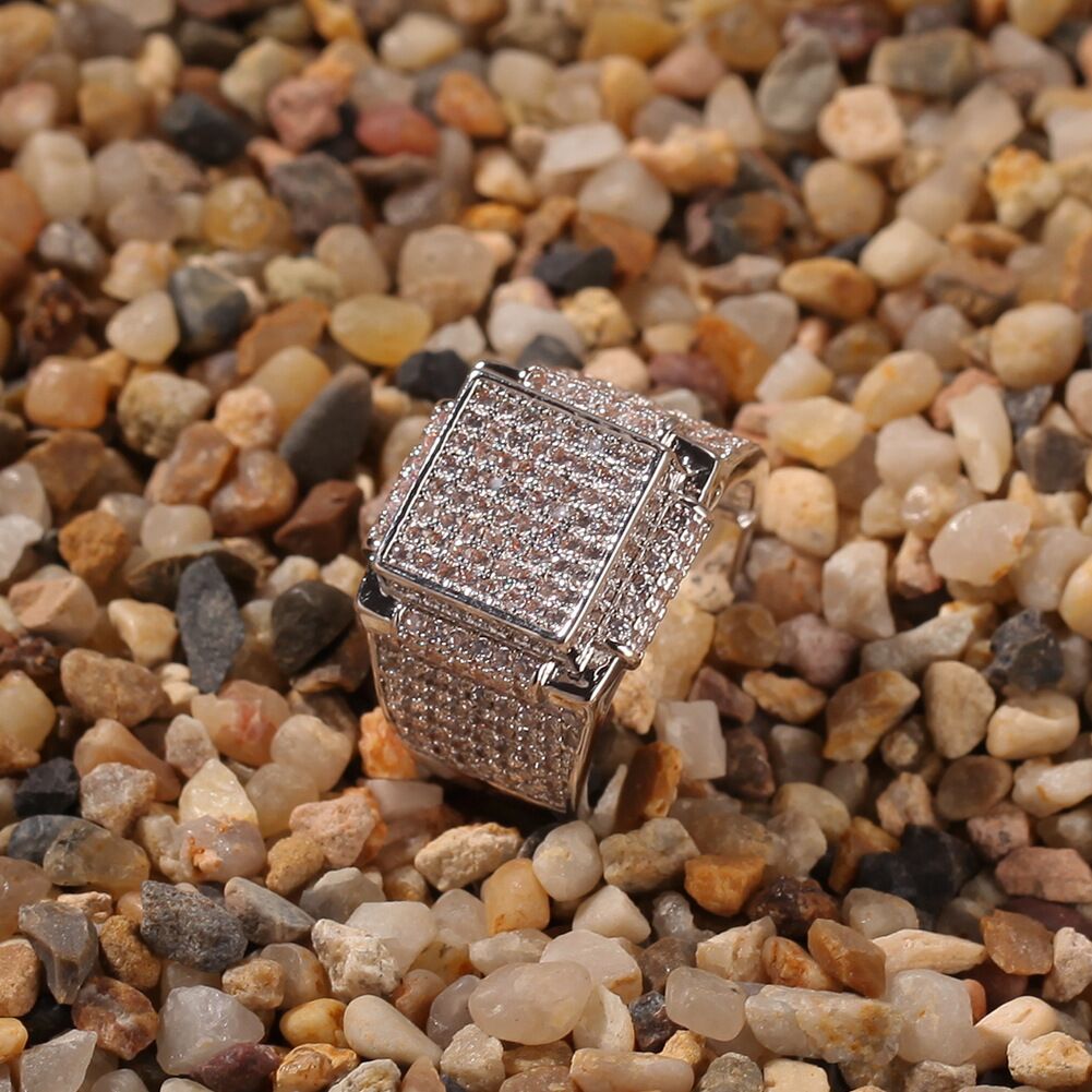 欧美嘻哈男式锆石戒指方形夸张指环潮牌男士Bling炫酷说唱单品