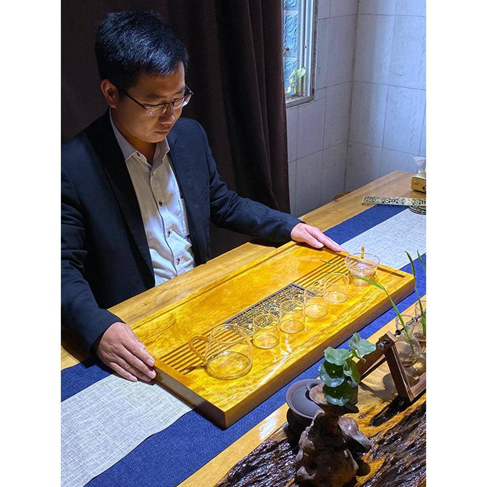 A6L缅甸金丝楠原木实木根雕茶盘方形整体茶海茶具中式功夫小茶台