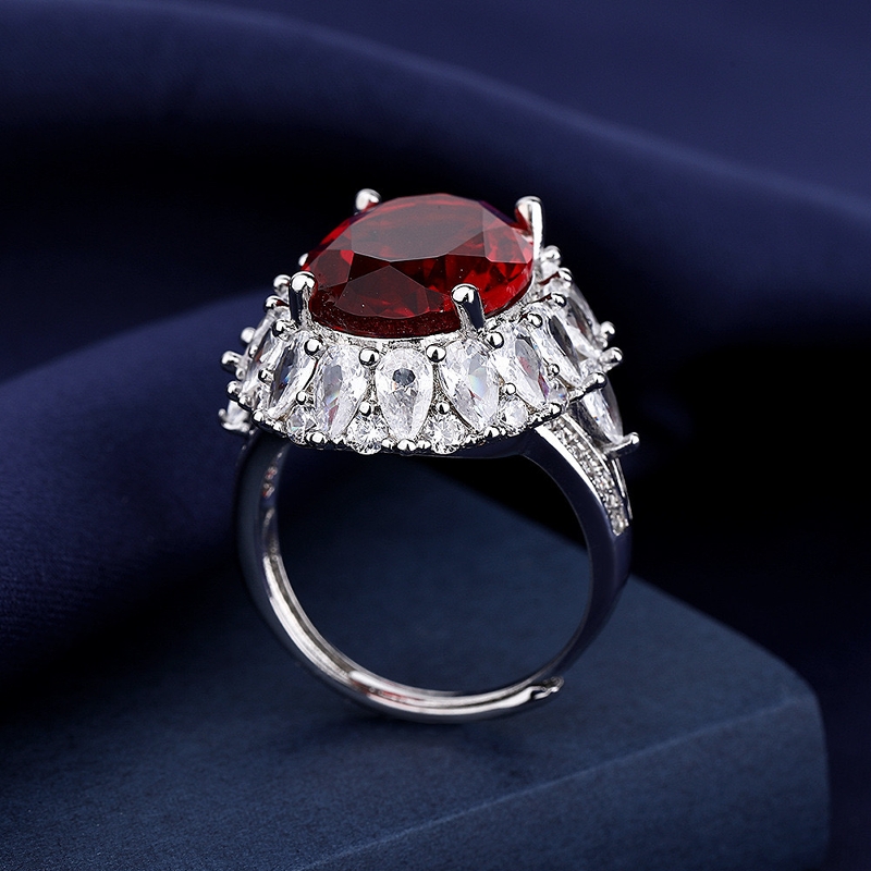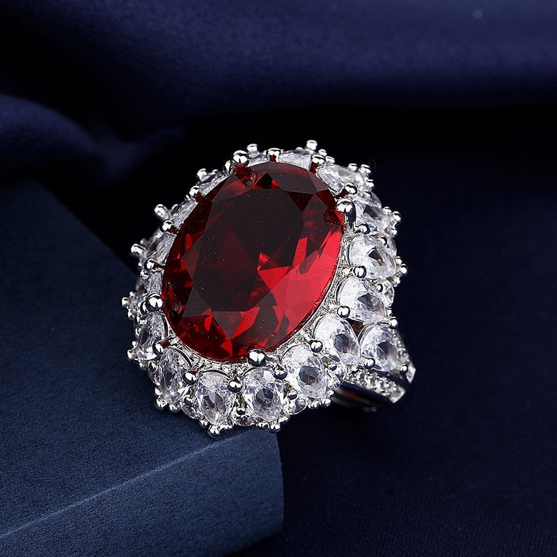 欧美五克拉仿真高碳钻鸽血红宝石戒指女奢华气质高级感冷淡风指环