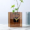 现代简约玻璃茶色蓝色透明v方形时钟座钟桌面摆件样板间软装饰品