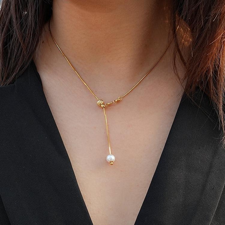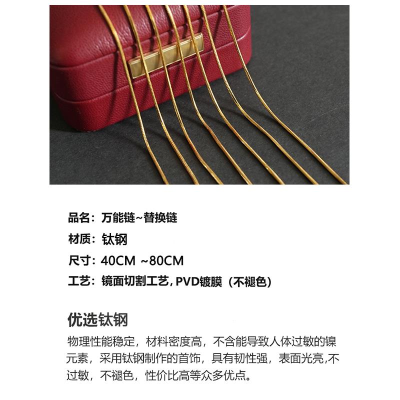 可调节针式万能链吊坠替换项链串珠小孔金色银色素链男女不掉色