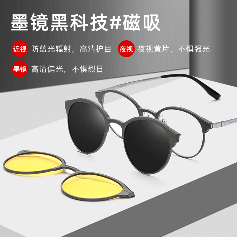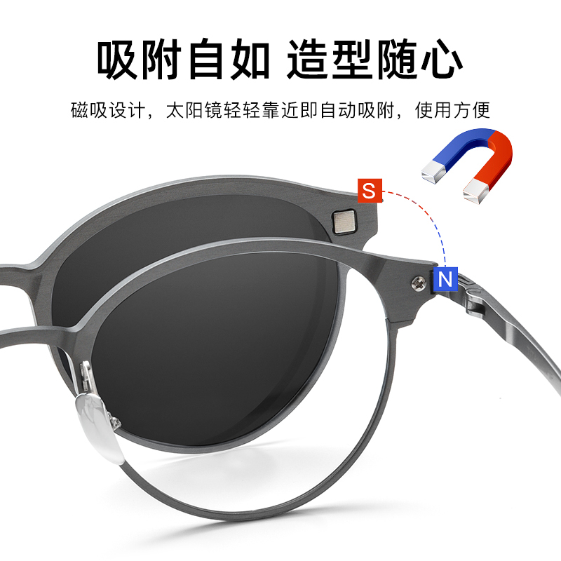 纯钛铝镁磁吸套镜眼镜男开车专用女三合一可配近视偏光太阳镜墨镜
