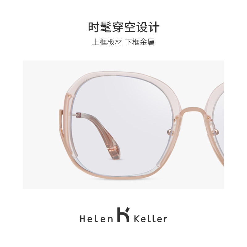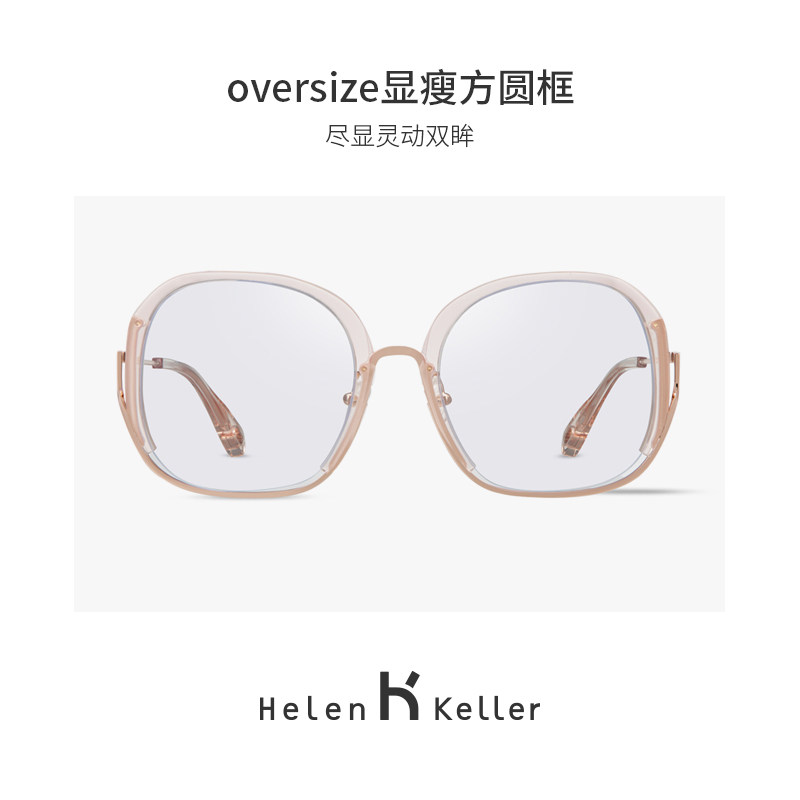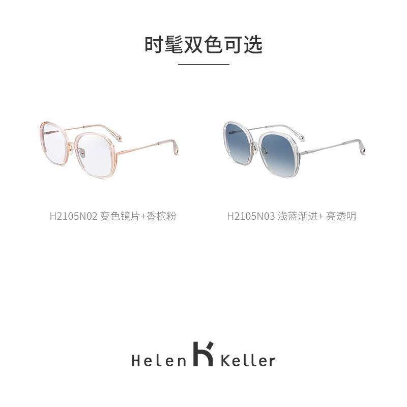 海伦凯勒新款半透方圆框墨镜女大脸显瘦防紫外线太阳眼镜H2105