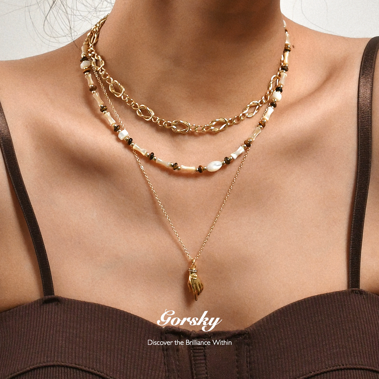 GORSKY秋冬美拉德风虎眼石项链女款叠戴原创小众设计串珠毛衣链