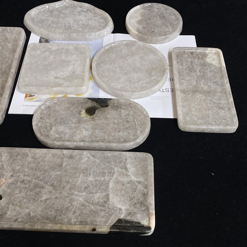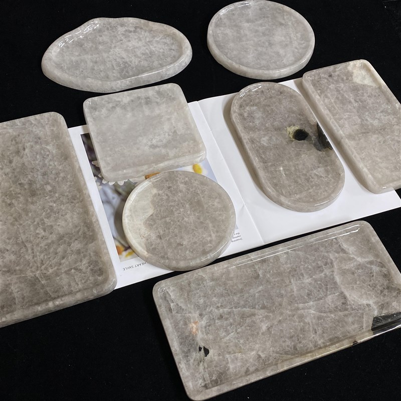 灰水晶透光桌面托盘水晶托盘摆件大理石置物盘酒店首饰收纳装饰