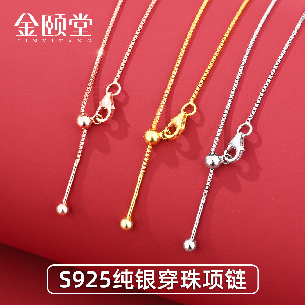 s925纯银项链盒子链针式防掉能万链穿路路通平安扣小孔珍珠链专用