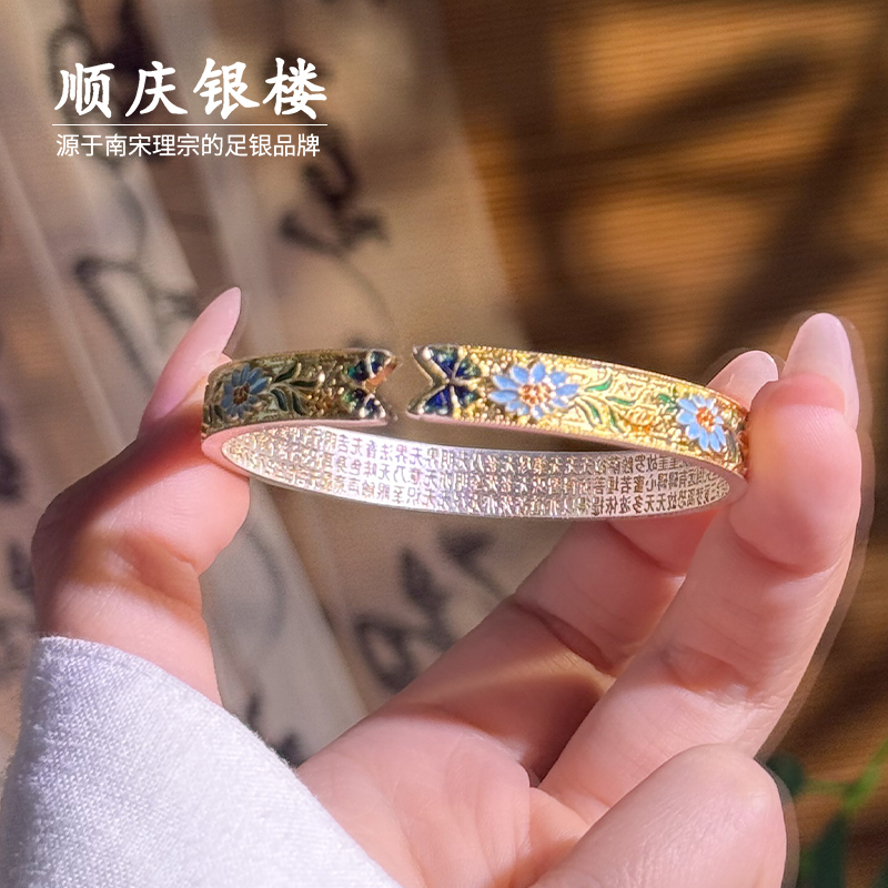 顺庆银楼足银S9999珐琅彩春光手镯女款新中式国风高级感百搭礼物