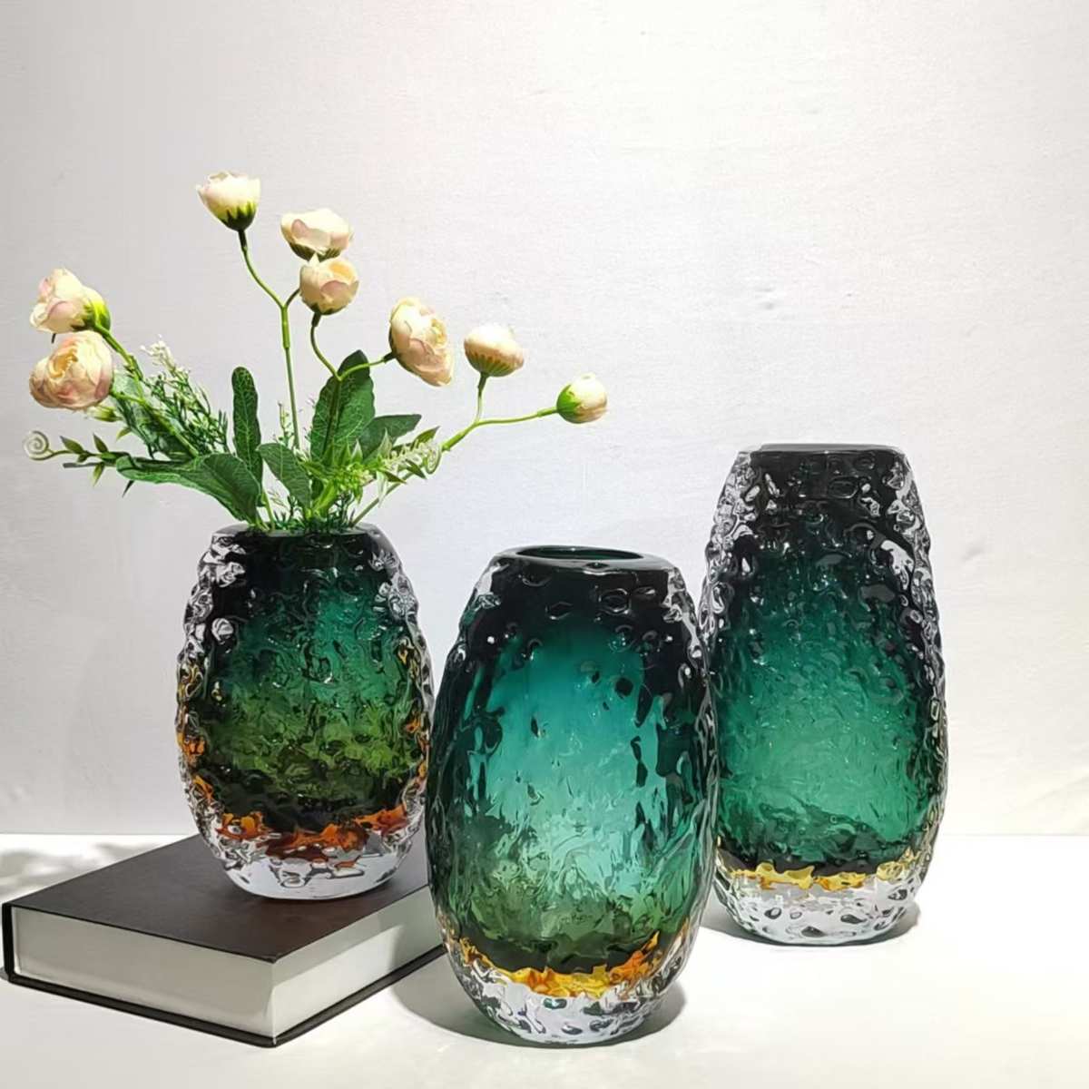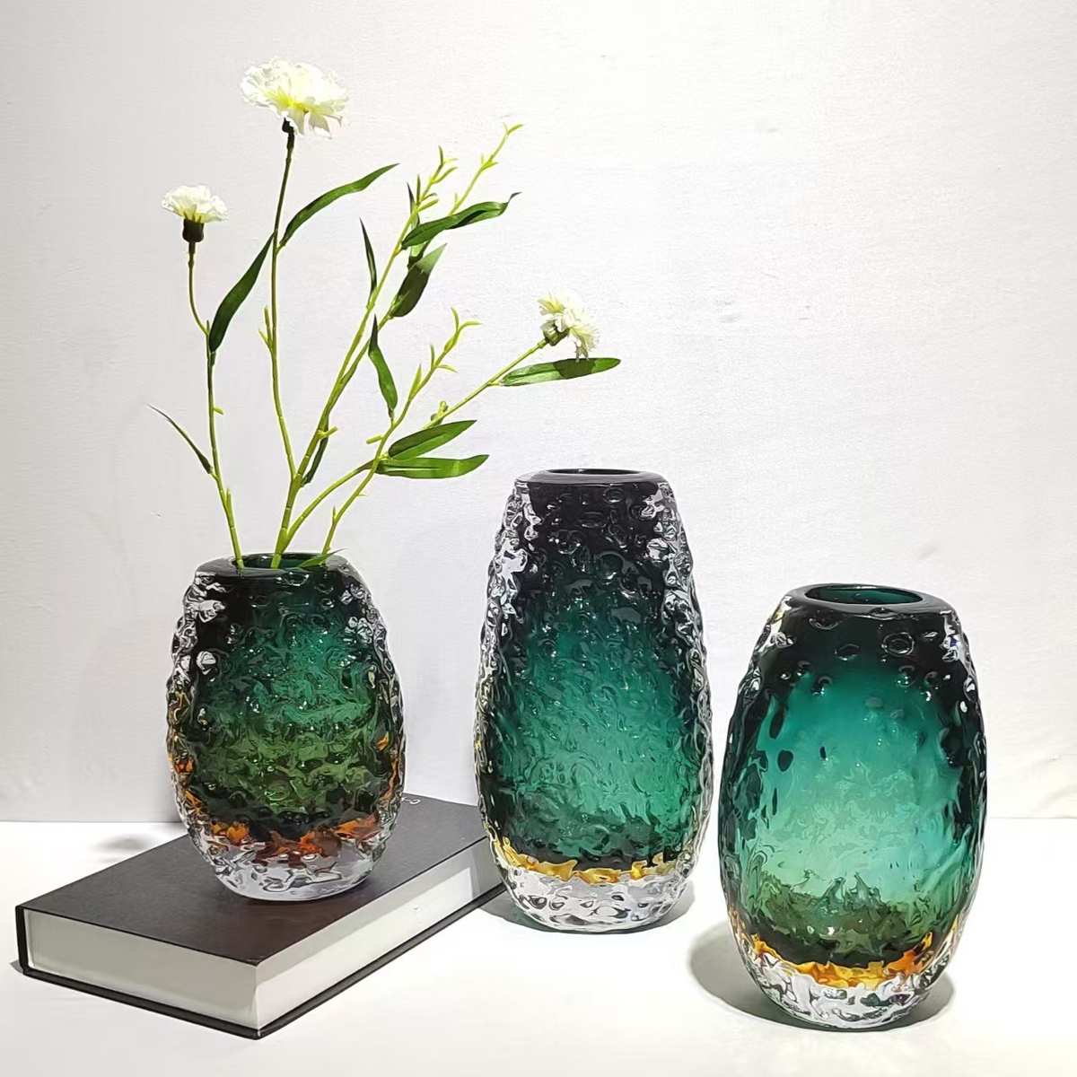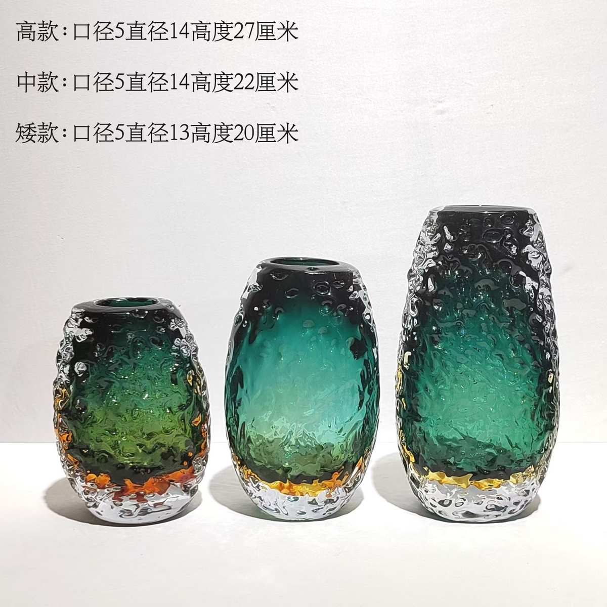 现代轻奢高档琉璃冰川文理插花花瓶家居桌面装饰摆件