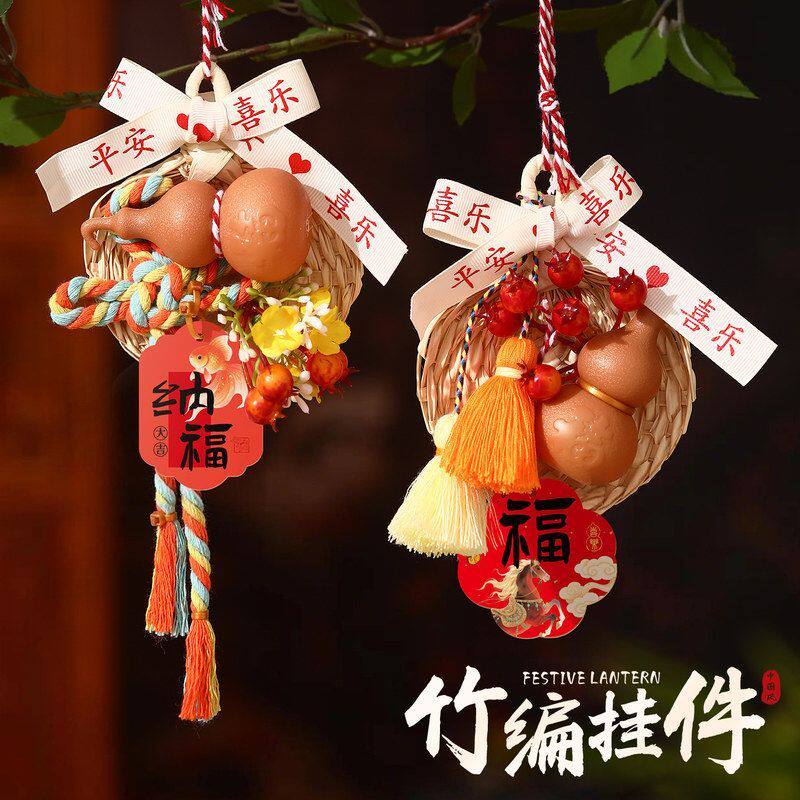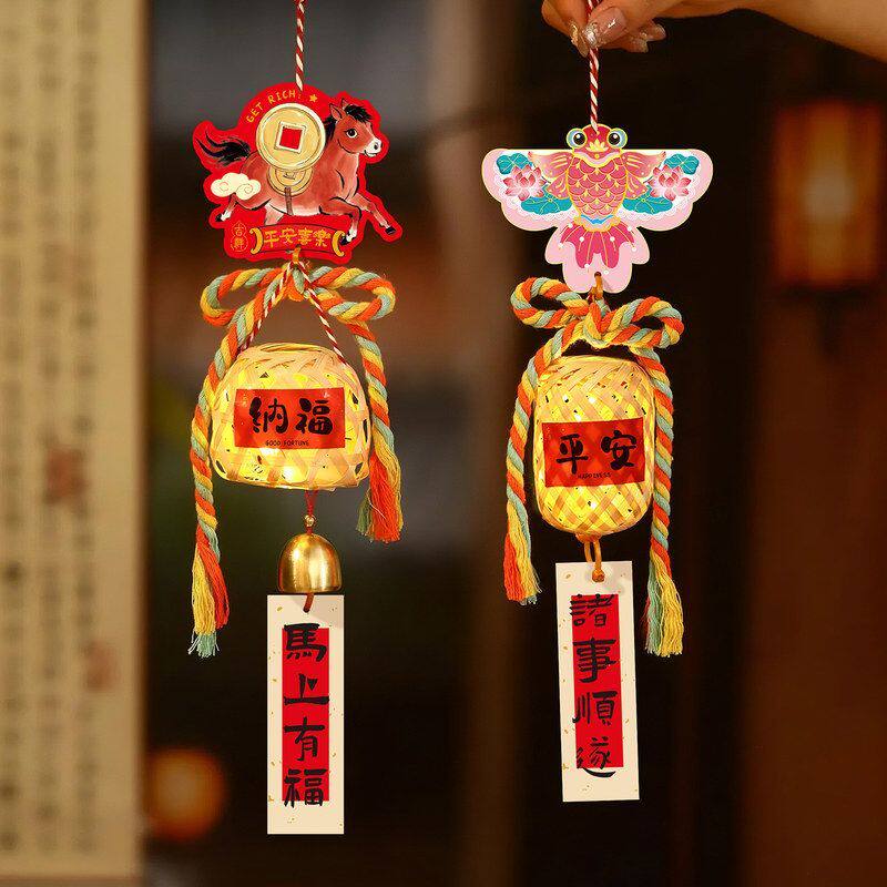 新年2026新款马年竹编挂饰灯笼挂件手工diy过年装饰场景布置摆摊