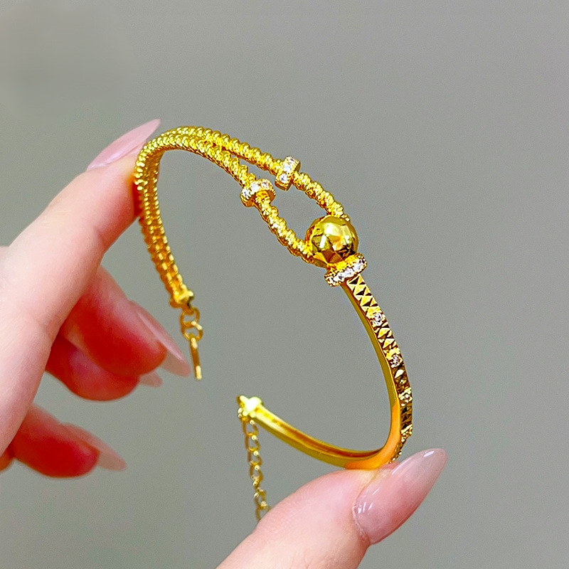 金店同款沙金开口C形点钻马蹄扣手镯高级感精致项链送女友礼物