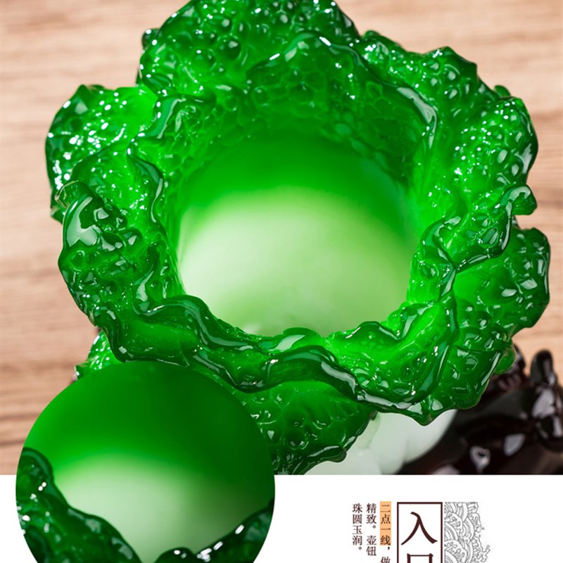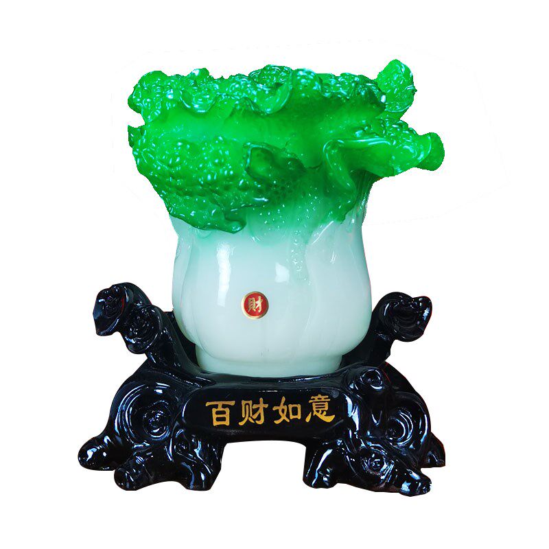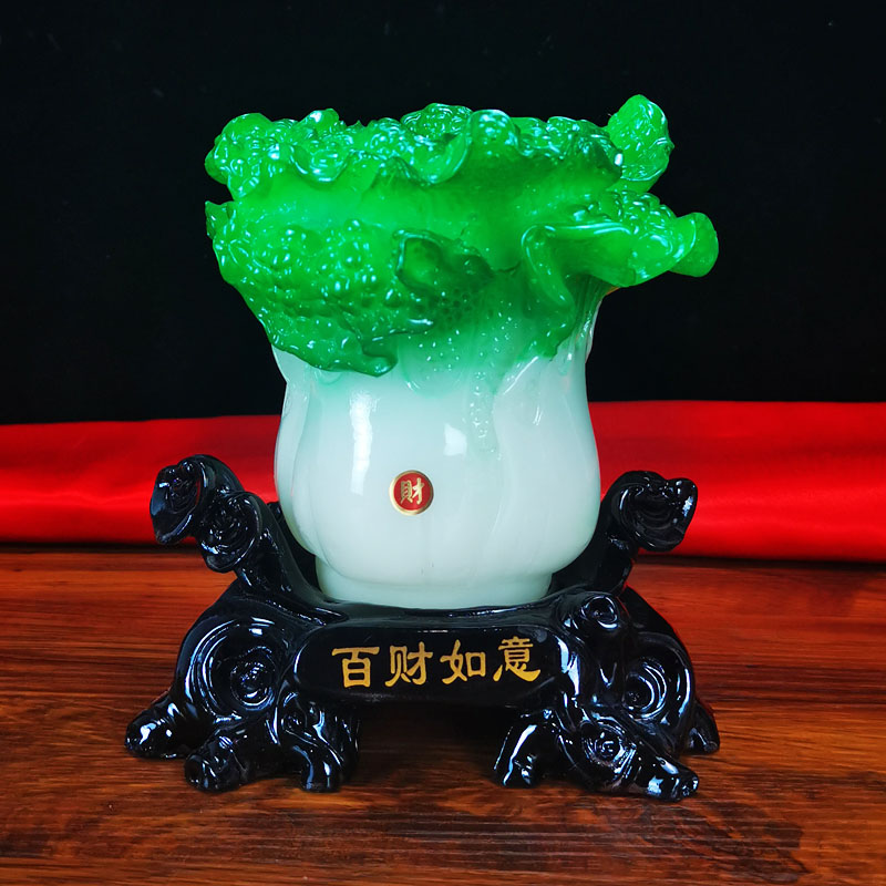 玉白菜百财如意摆件笔筒家居装饰工艺品招财客厅办公室书桌礼品