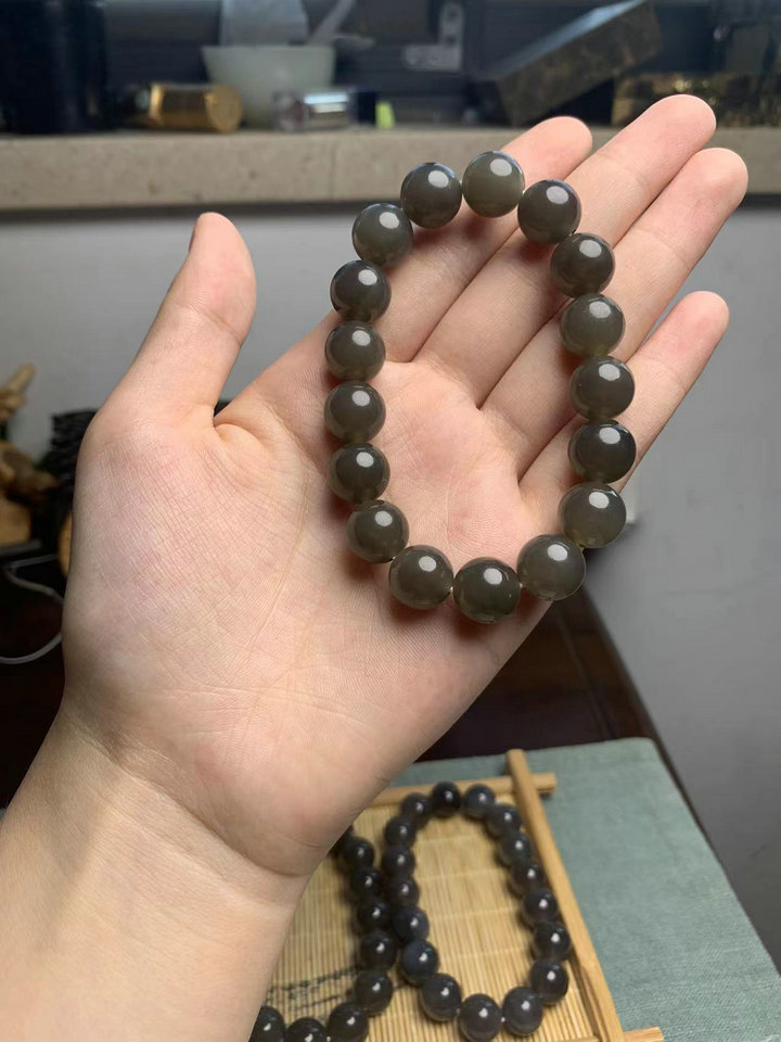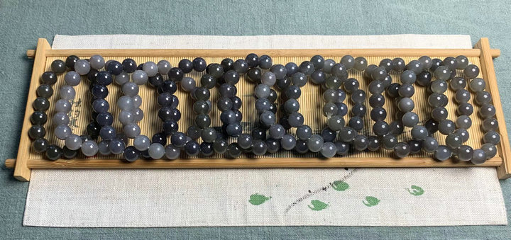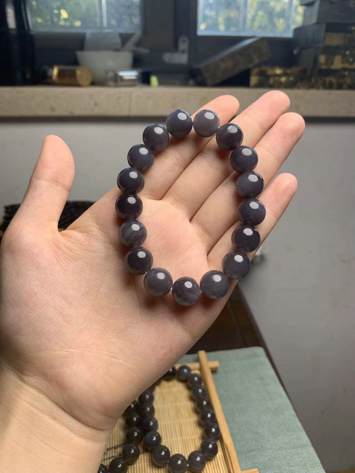 【烟雨】和田玉青海料烟紫手链17颗单珠12mm