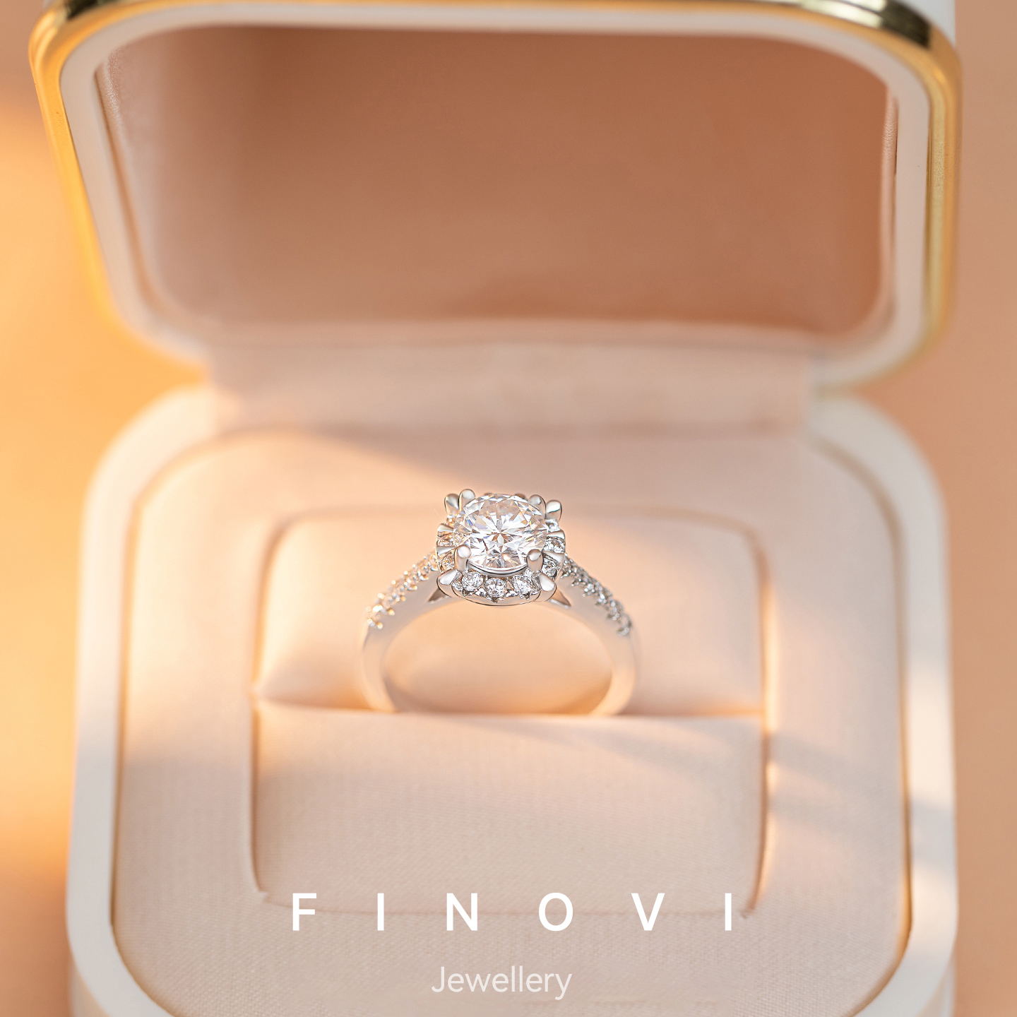 莫桑钻戒指女纯银素圈戒指1克拉莫桑石豪华婚戒豪镶求婚结婚戒指
