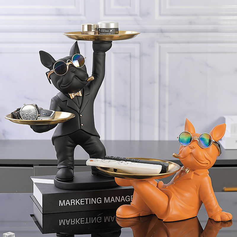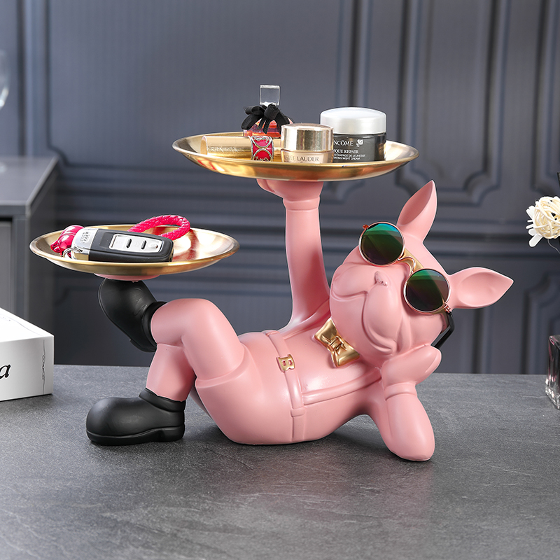 创意妖娆狗钥匙收纳摆件入户玄关桌面托盘鞋柜装饰品乔迁新居礼品