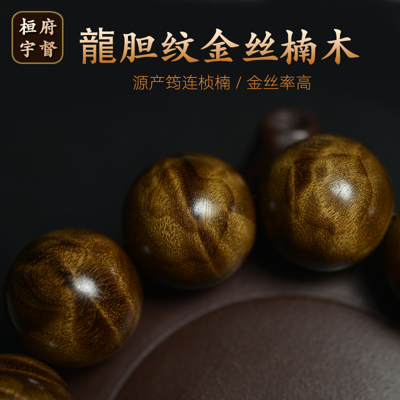 龙胆纹金丝楠木手串小叶桢楠老料水波纹乌木阴沉木男佛珠手串2.0