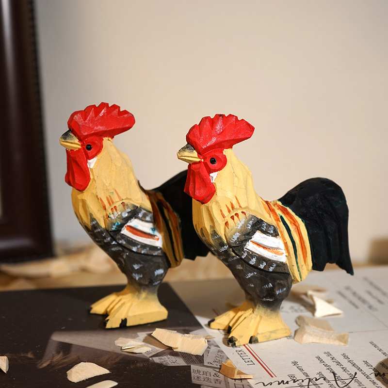 【公鸡中的战斗机】木雕小摆件可爱动物桌面摆放装饰送儿童小孩