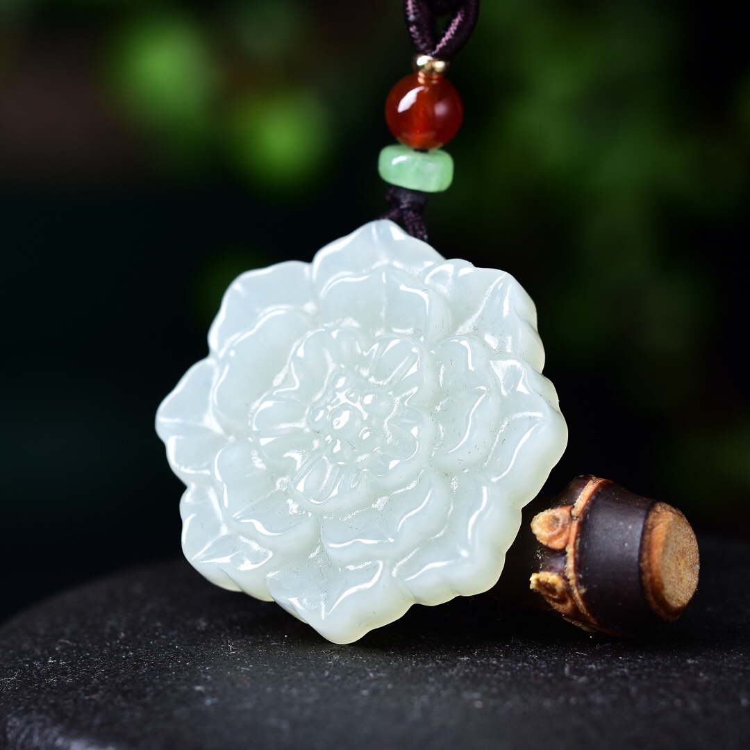 新疆和田玉羊脂玉白玉青白玉吉祥八瓣花吊坠男女士款挂件玉坠玉佩