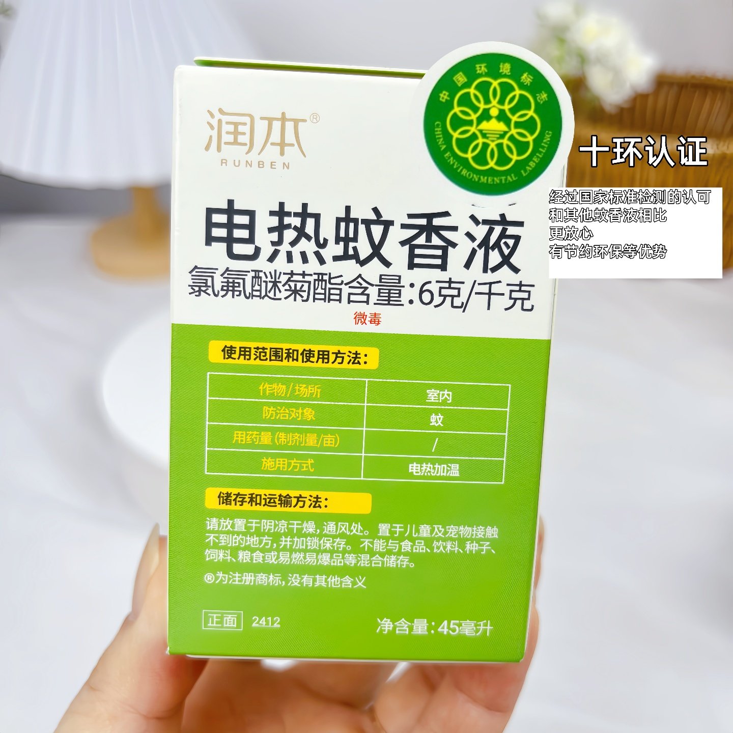 润本电热蚊香液室内插电式驱蚊无烟无香无味型蚊香补充液通用45ml