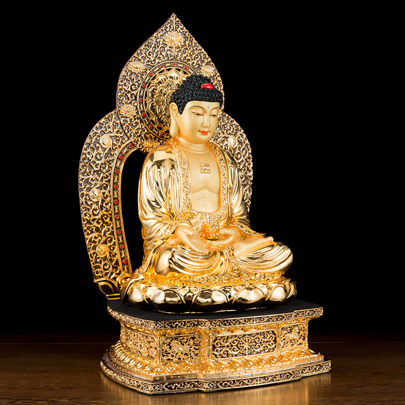 黄铜著金西方三圣佛像摆件纯铜阿弥陀佛大势至观音菩萨供奉摆件
