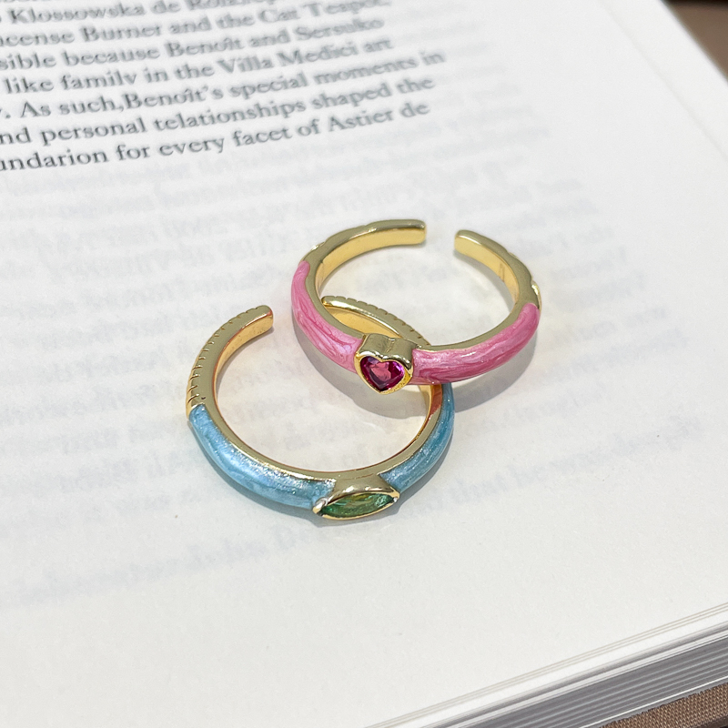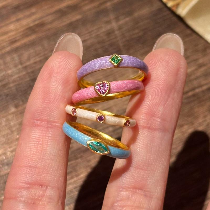 S925纯银多巴胺彩色珐琅叠戴戒指女轻奢小众高级感气质食指戒指环