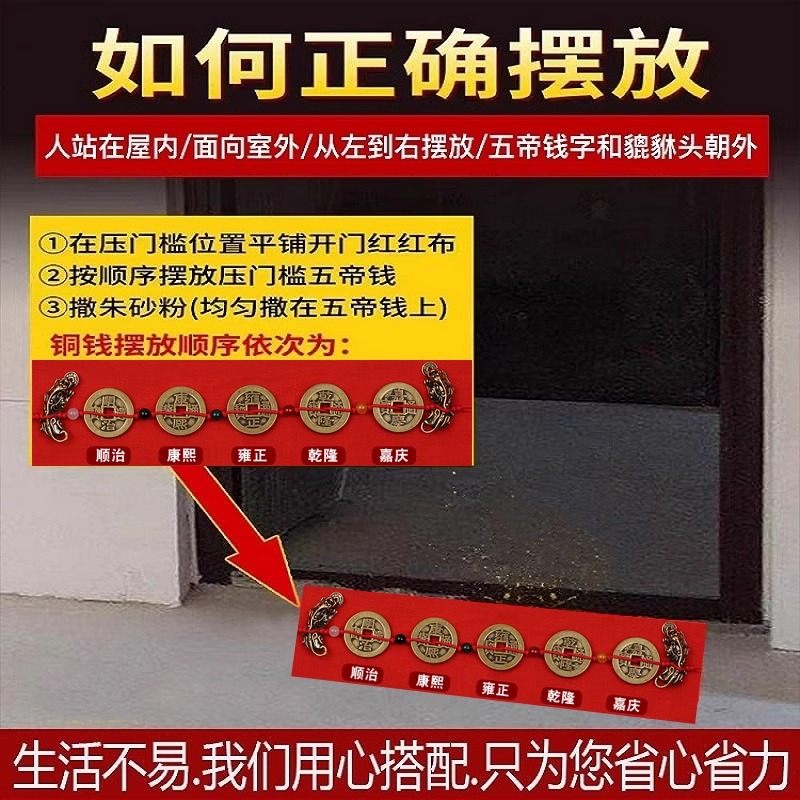 装修五帝钱真品压门槛入户门出入平安门槛石古币过门石下压的铜钱
