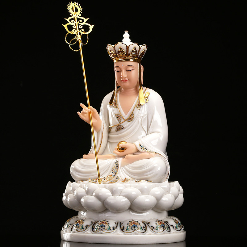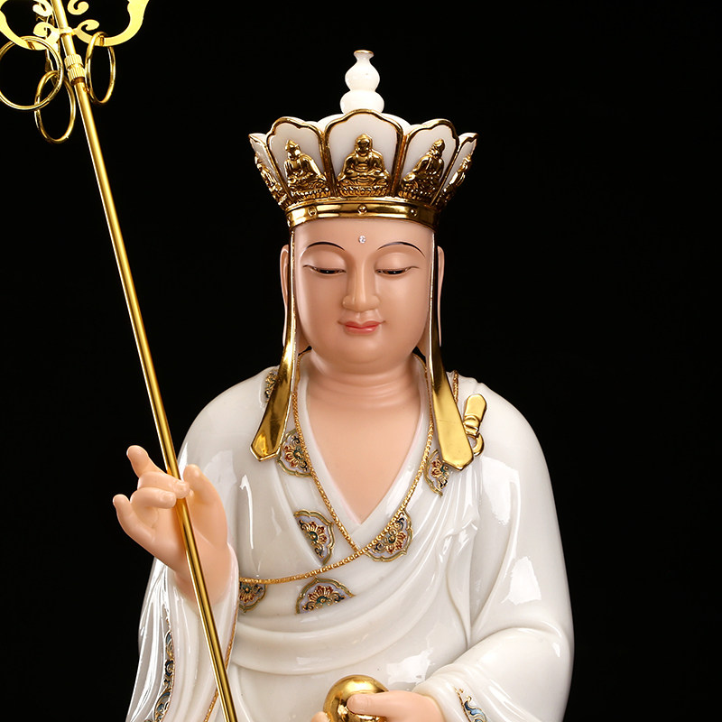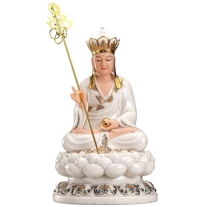 地藏王菩萨佛像供奉家用汉白玉地藏王菩萨玉石雕地藏佛像坐像摆件