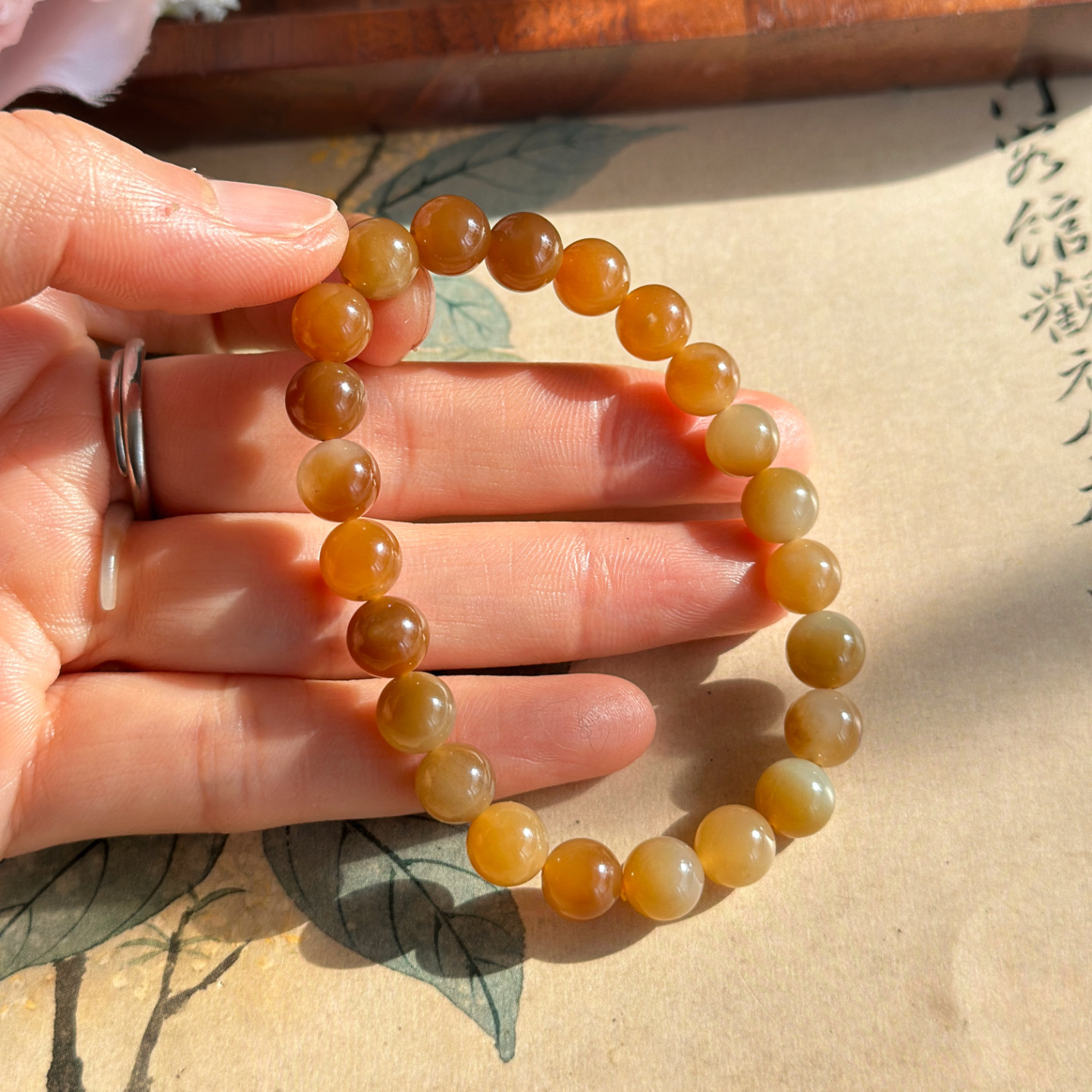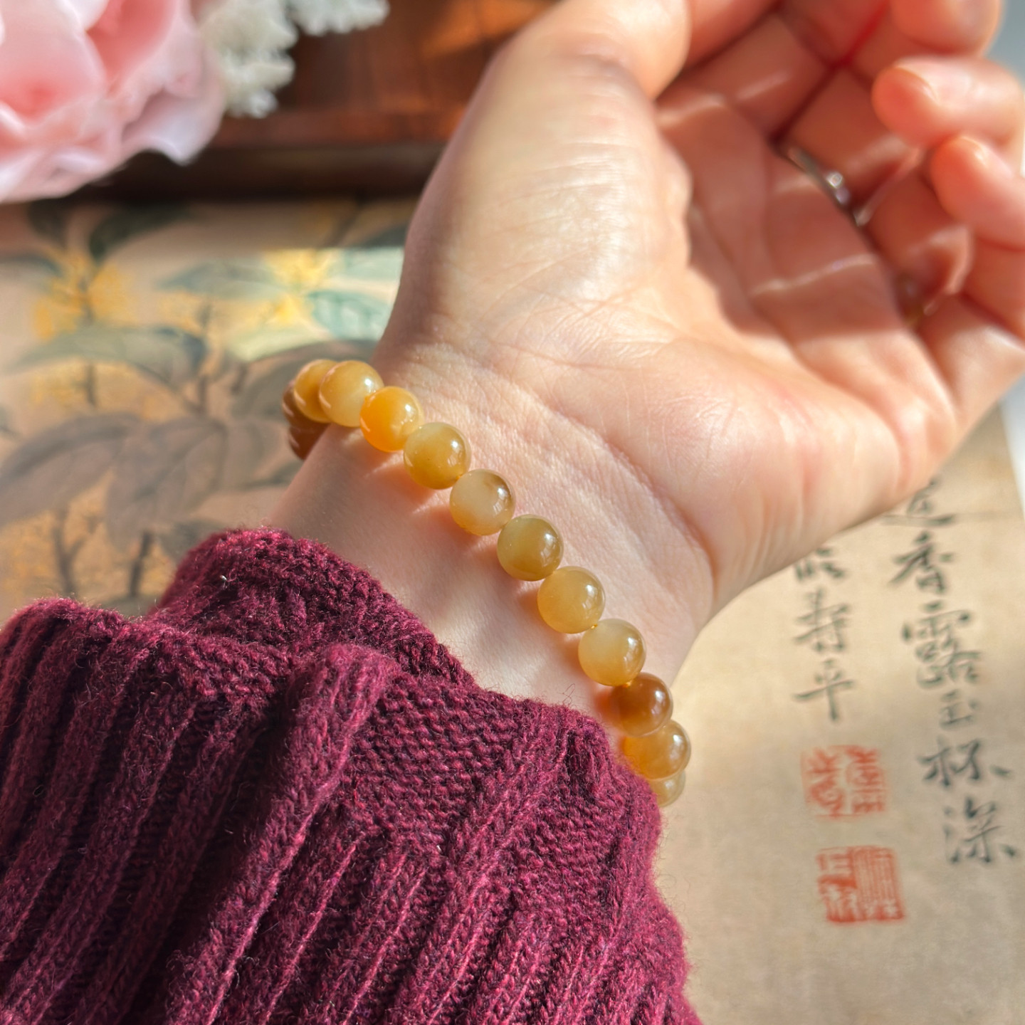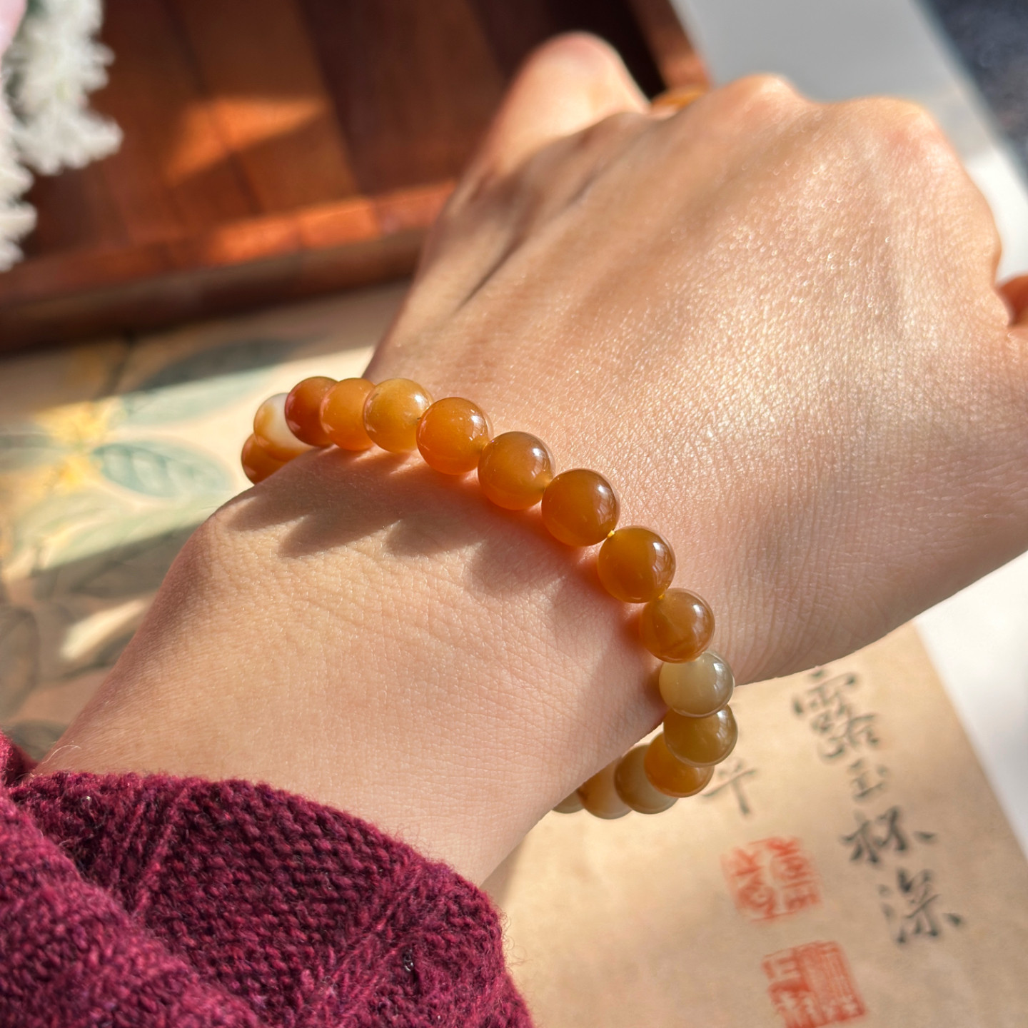 福利捡漏天然正宗新疆和田玉且末金山矿糖玉手串圆珠单圈玉石手链
