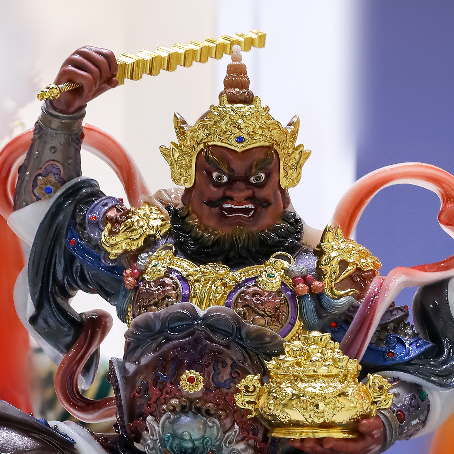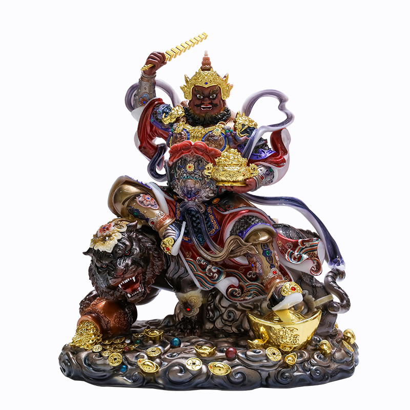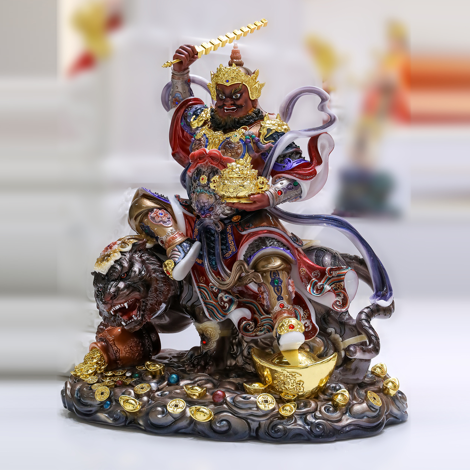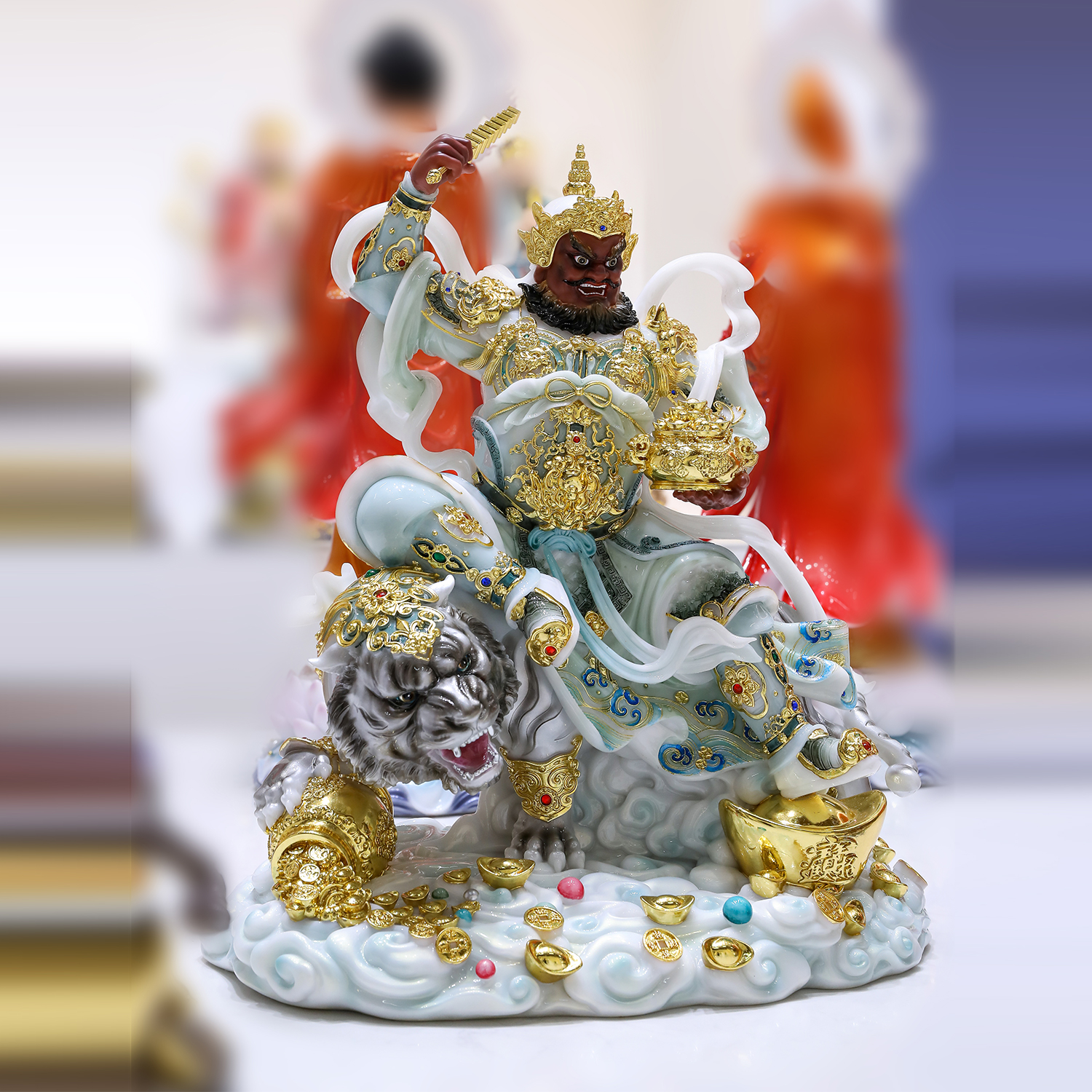 新款汉白玉赵公明财神骑虎武财神赵公明元帅家用店铺办公供奉摆件
