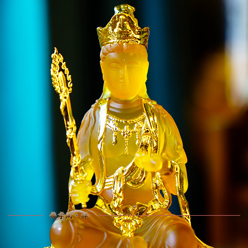 原创水琉璃五台山持剑文殊菩萨佛像坐像家用佛堂供奉兔本命佛摆件