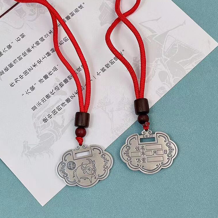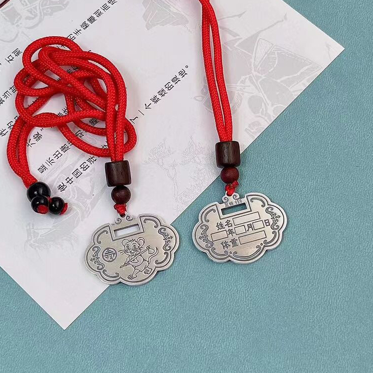 999纯银锁宝宝平安锁十二生肖挂件吊坠刻字婴儿童虎年本命年项链