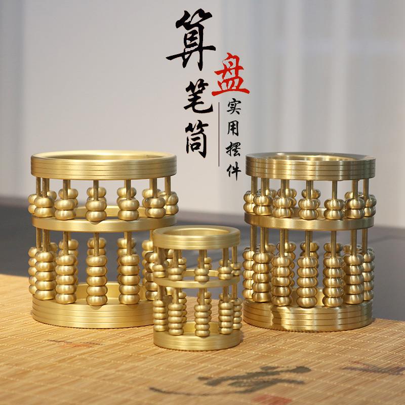 黄铜算盘笔筒纯铜中式摆件办公室桌面创意礼物铜艺术品家居装饰品