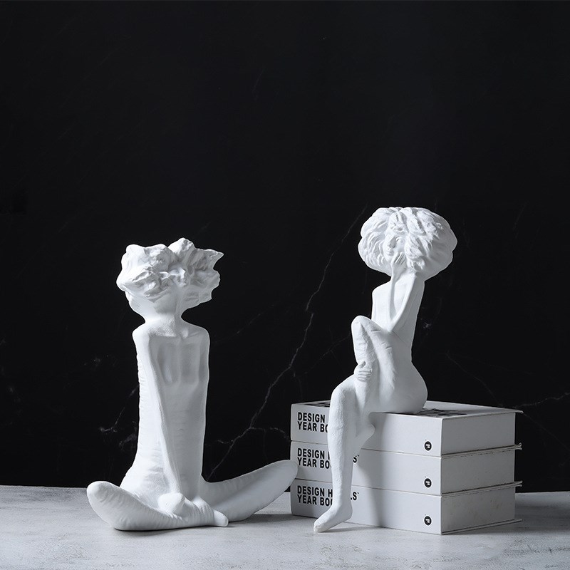 现代北欧抽象树脂白色爆炸头时尚女郎人物人像美女艺术雕塑摆件
