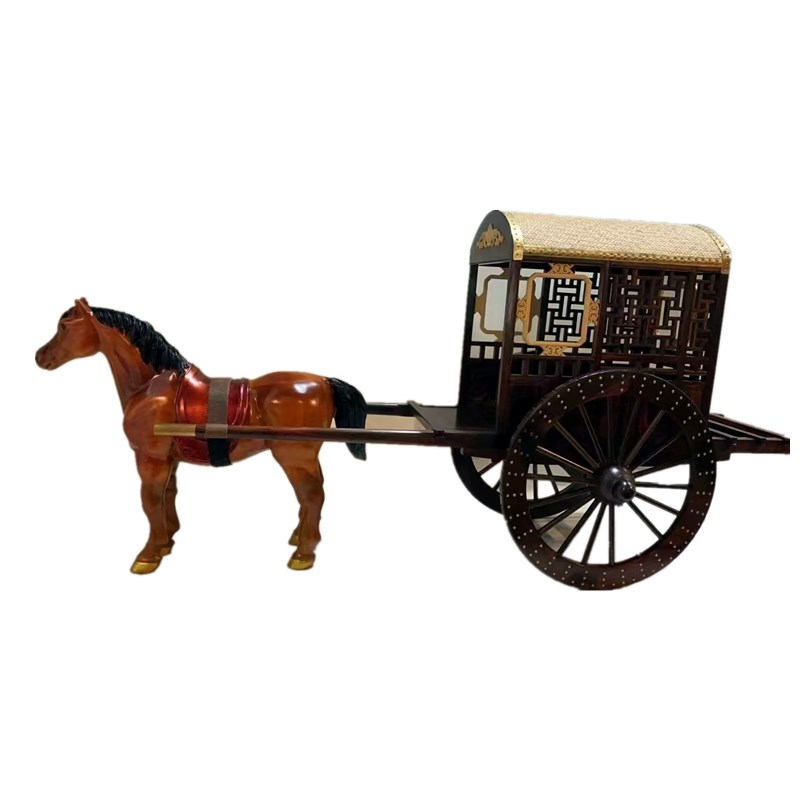 古代马车摆件桌面大号家居玄关门厅装饰创意仿古中式微缩家具木雕