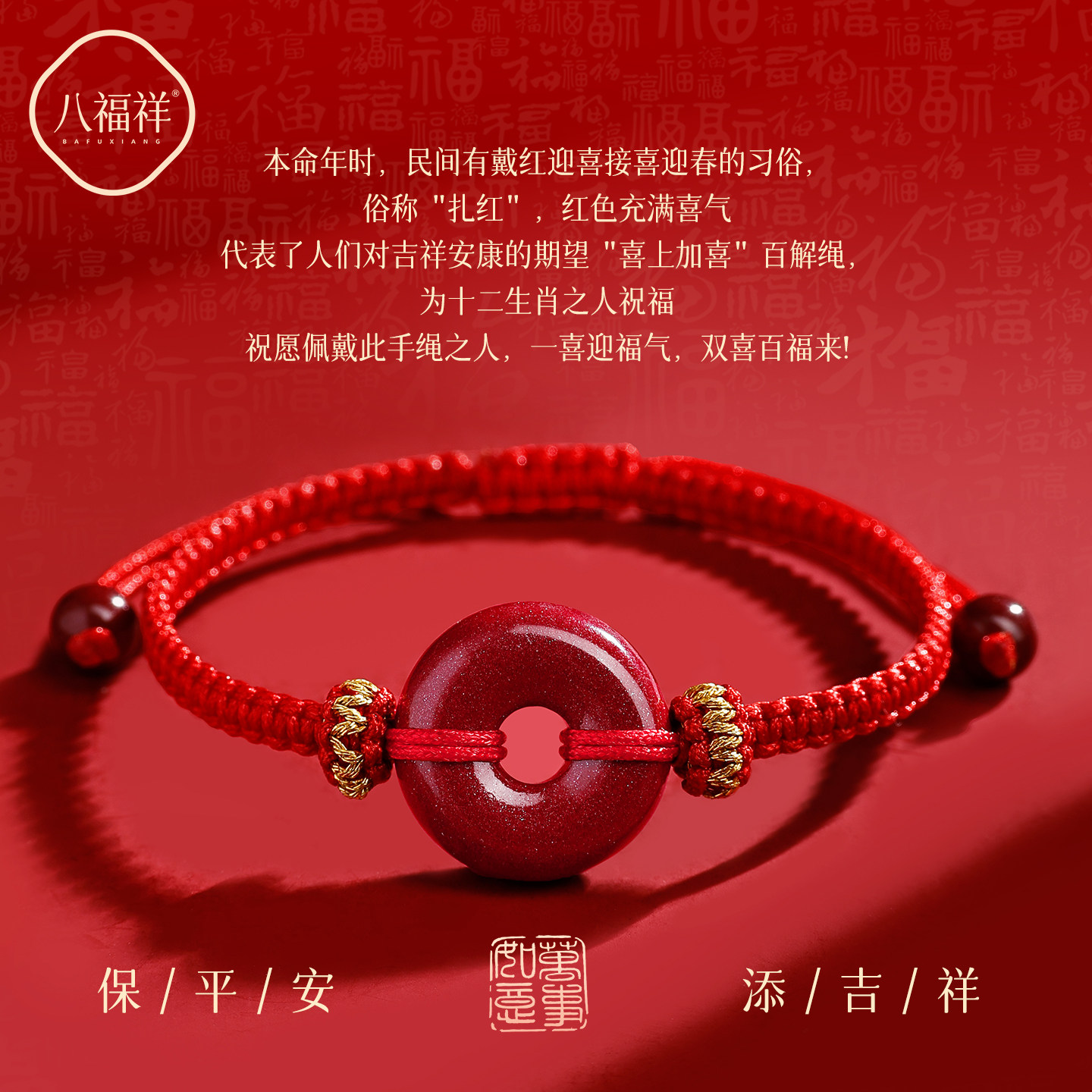 普陀山朱砂平安扣手串红绳手链手工编织绳红色手绳属马本命年礼物