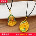 当前位置:首页>商品详情>金包银吊坠女实心珐琅彩錾刻宫廷复古国潮风圆牌锁骨链配绳送礼物